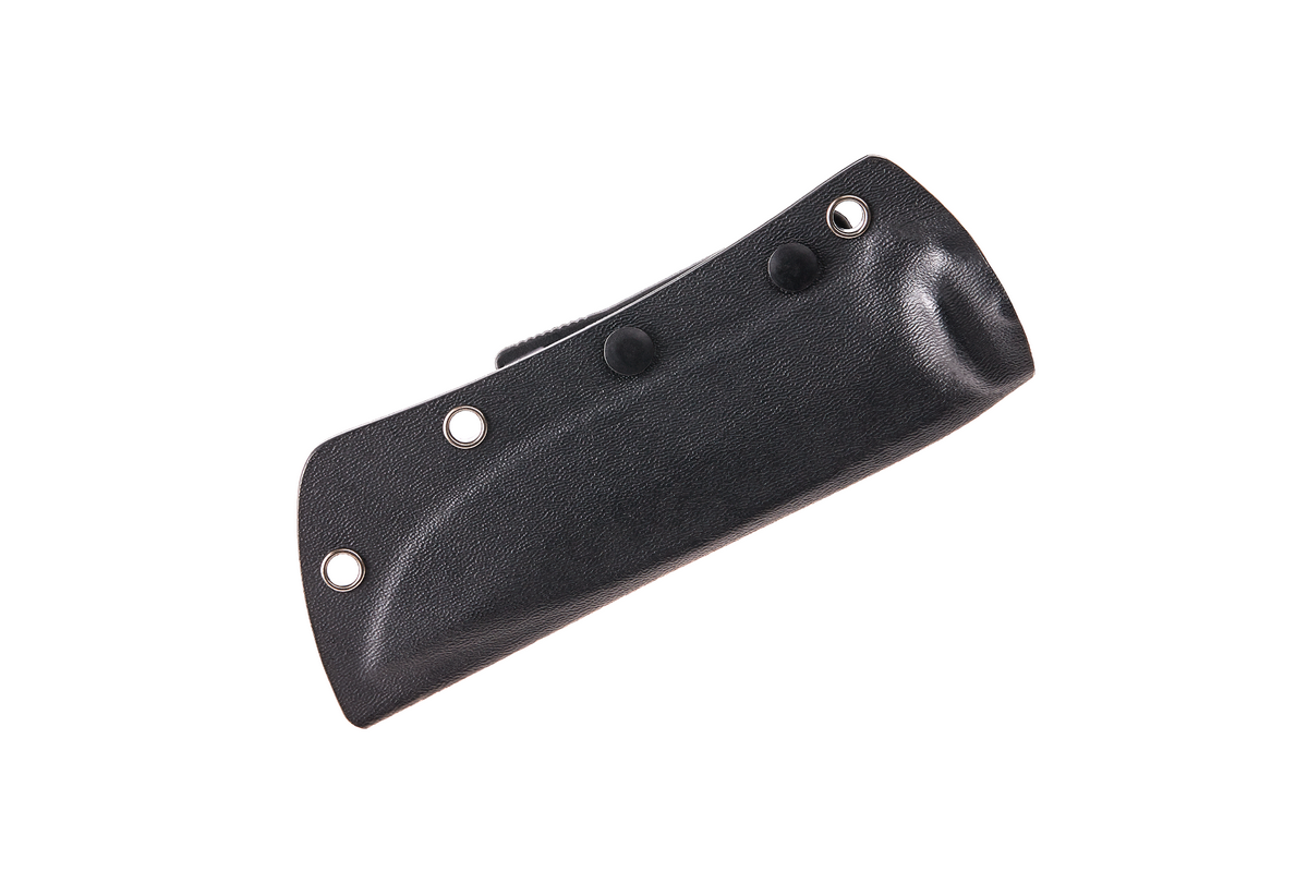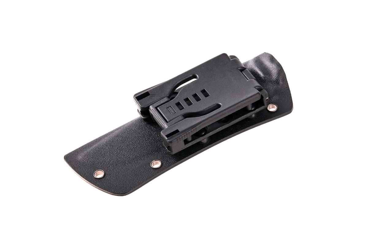 Нож без ножен не возможен и у хорошего ножа должны быть подобающие ножны. Ножны изготовлены из термопластика и имеют многопозиционную клипсу Тек-Лок. Этот зажим можно приспособить под любой ремень и подвесить нож в любом положении. Достаточно отодвинуть фиксирующую защелку и совместить одно из девяти отверстий клипсы с отверстиями на ножнах и скрепить их винтами.