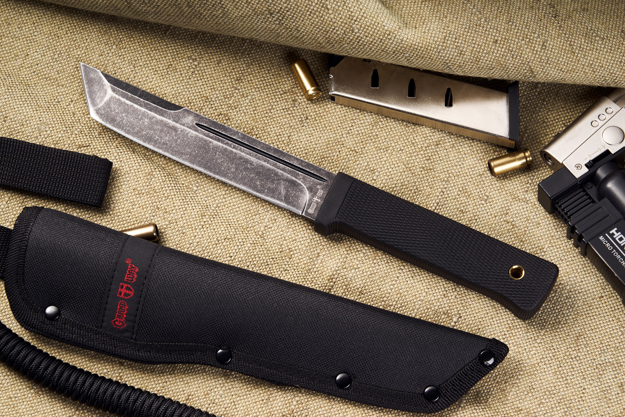 Його клинок виготовлений із нержавіючої сталі марки 440С. Лезо з цієї сталі довго залишається гострим, а також добре чинить опір корозії. Якісну сталь додатково доповнює покриття «Black Stonewash», яке надає лезу противідблискових властивостей та приховує подряпини та інші сліди використання.