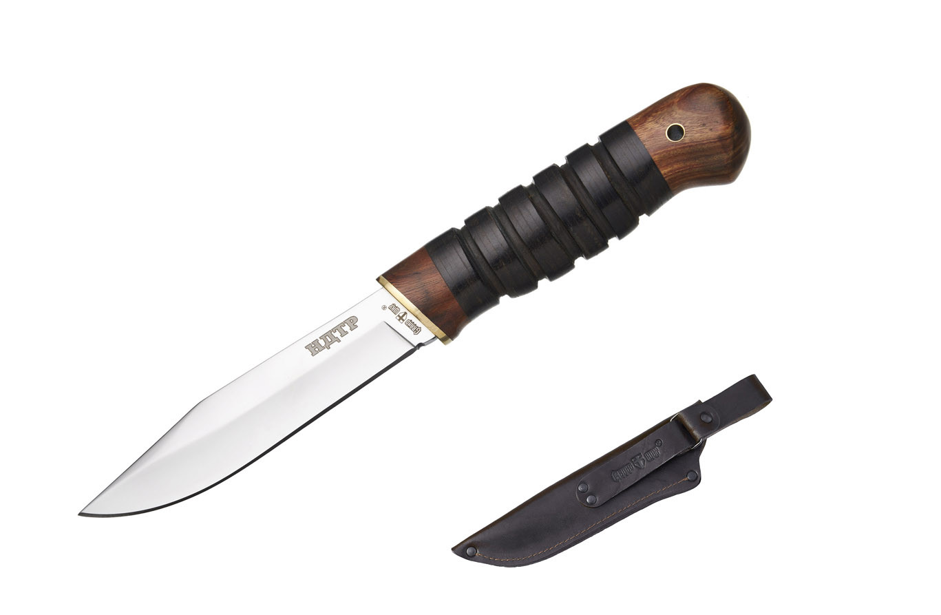 Руків'я ножа виготовлене з дерева та набірної шкіри. Воно в міру масивне, добре заповнює долоню. Завдяки овальному перерізу руків'я не намагається провернутись в руці під час роботи. Ребра в центральній (набірній) ще більше підвищують надійність хвату. У наверші є темлячний отвір.