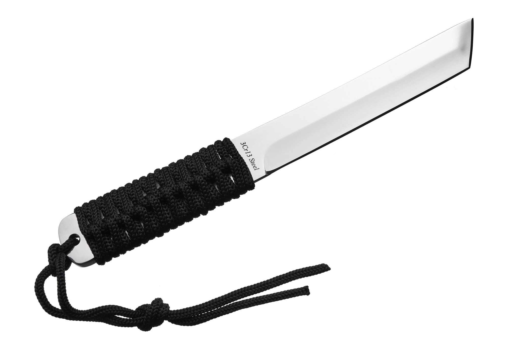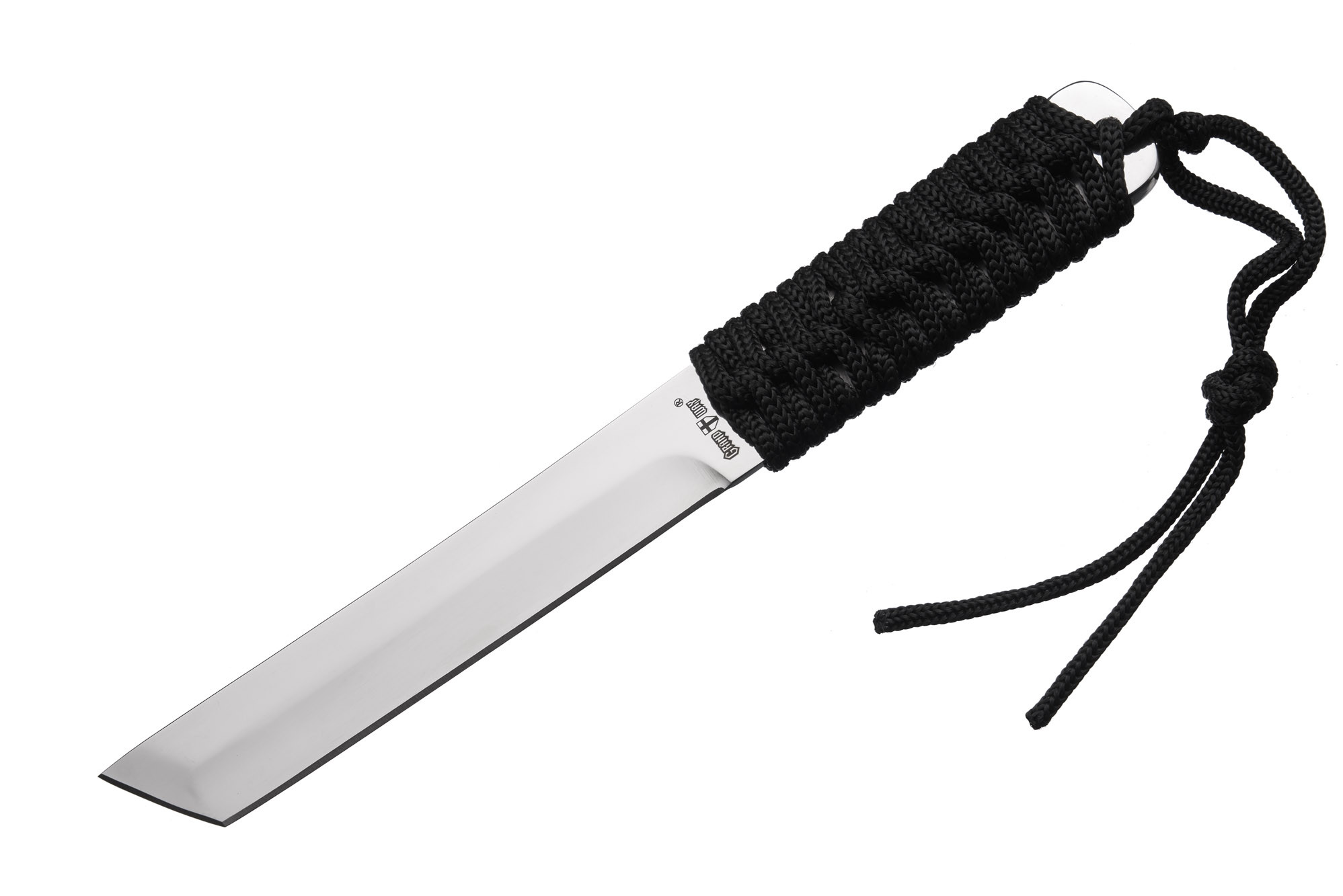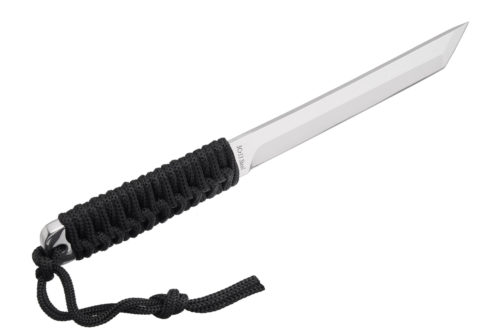 - Практика показує, що тантоїди і так непогано переживають серйозні навантаження, у тому числі – і метання. Але Grand Way 2936 RP пристосований для цього навіть більше ніж деякі інші ножі. Його рукоять не має дерев'яних або пластикових накладок, здатних розколотися при невдалому попаданні, а просто обплетена міцним шнуром. Та й у поході такий простий ніж буде максимально практичним та надійним (у ньому просто нічому ламатись).