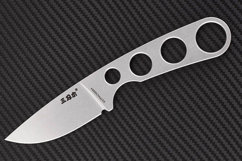 Инженеры Sanrenmu взяли типичный фикс, и выкинули из его конструкции всё лишнее, оставив главное – способность хорошо резать. Простая рукоять этого ножа фактически является хвостовиком его клинка. Она выполнена по скелетному принципу. Бросающиеся в глаза большие круглые отверстия не только значительно облегчают всю конструкцию в целом, но и придают ножу приятный, запоминающийся вид. При таких миниатюрных размерах не забыта и эргономика – есть и выборка и упор под пальцы. Маленький ножик лежит в ладони удивительно комфортно.
