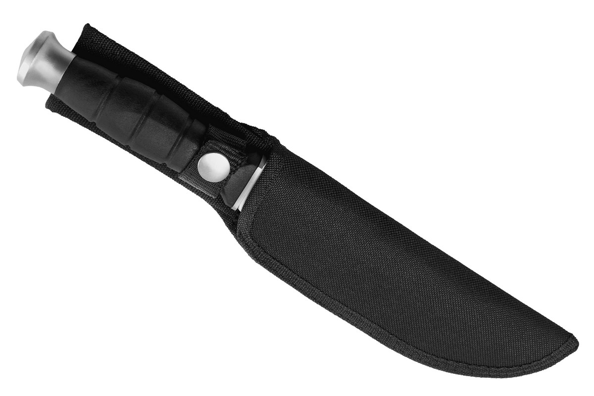 Рукоять нескладного ножа 7824 изготовлена из износостойкого пластика. На ней сделан ряд поперечных борозд, повышающих комфортность и надежность хвата.