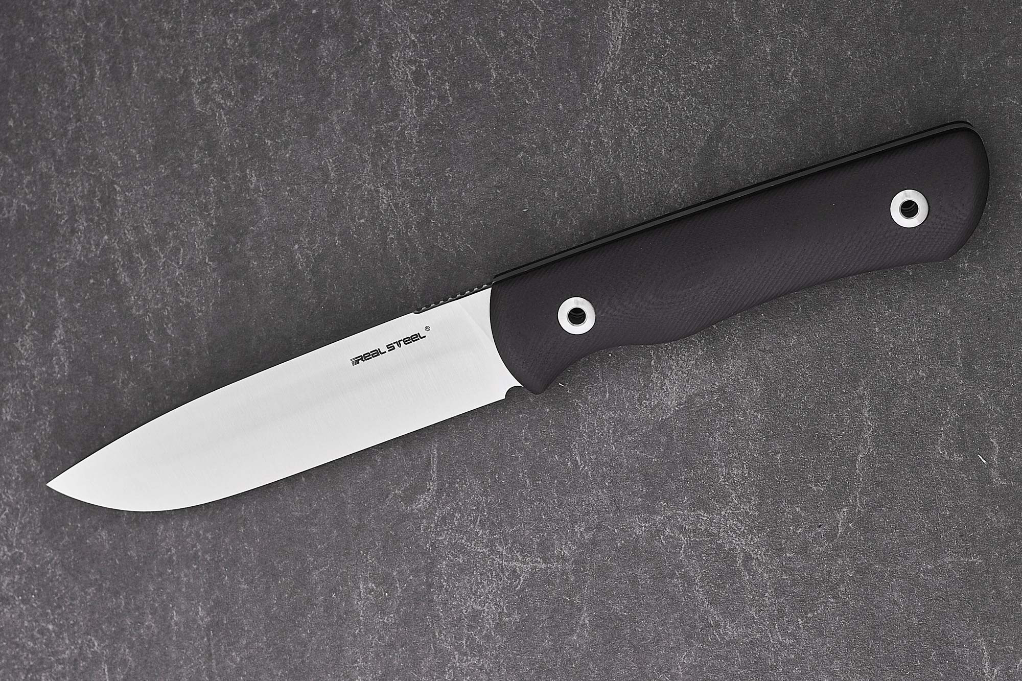 Изготовлен клинок из шведской нержавеющей стали Sandvic 14С28 . Эта сталь широко применяется в ножевой индустрии. Из неё получаются клинки с отличным резом и отличной сопротивляемостью коррозии.