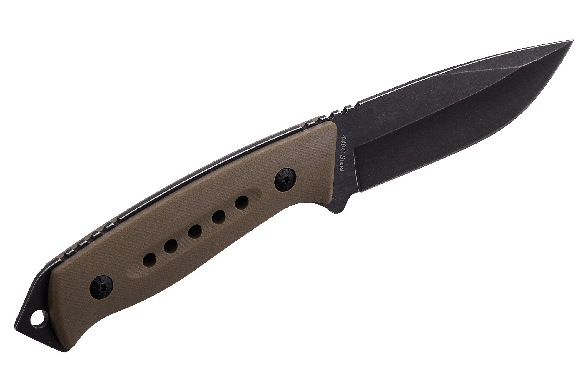 Виготовлений клинок з нержавіючої сталі 440 С. Недорогої нержавіючої сталі, що, не дивлячись на свою бюджетність, пропонує власнику ножа корозійностійкість, зносостійкість та тривале утримання заточування.