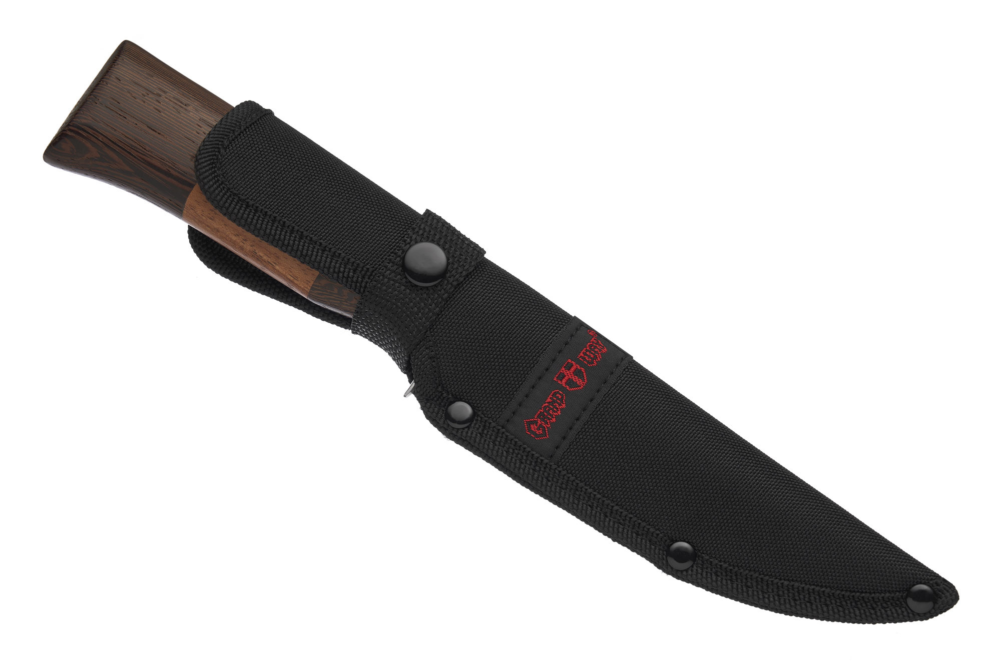 До ножа додаються міцні піхви з кордури. Мисливський ніж Grand Way 1103 має відносно дуже привабливу для мисливського ножа ціну, проте виготовлений якісно та зі смаком і зрозумінням практичних потреб.Ви сплатите невеликі гроші, але отримаєте справжній мисливський ніж!