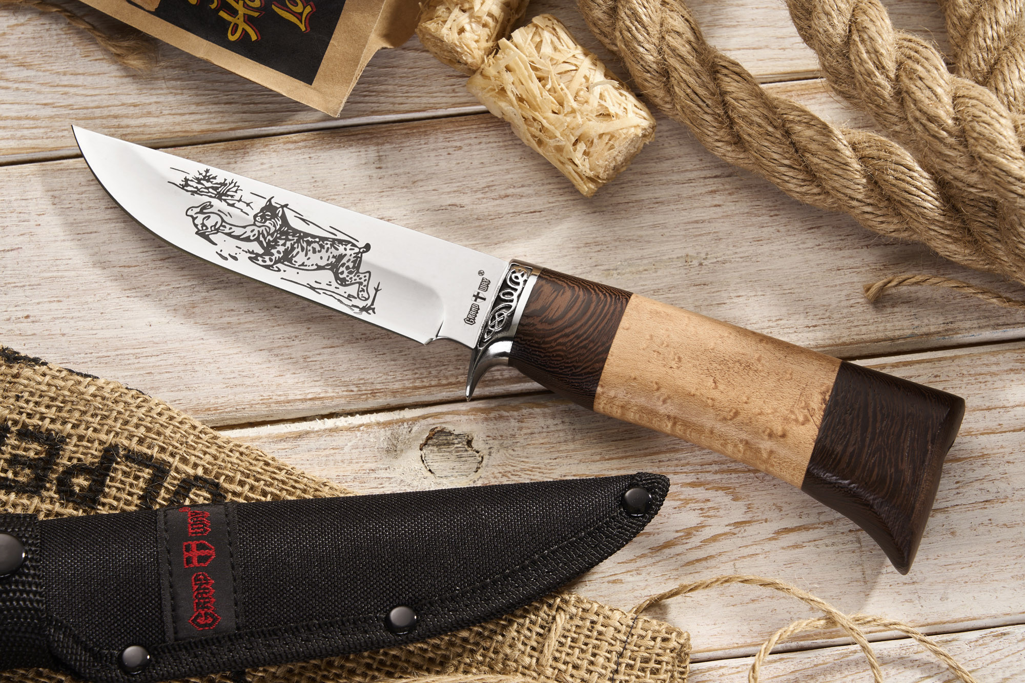 Деревина не лише виглядає привабливо, але й приємна на дотик. Вона не замерзає в холодну погоду, не нагрівається в спеку, має привабливе забарвлення та малюнок і чудово поєднується з оздобленим клинком та больстером ножа.