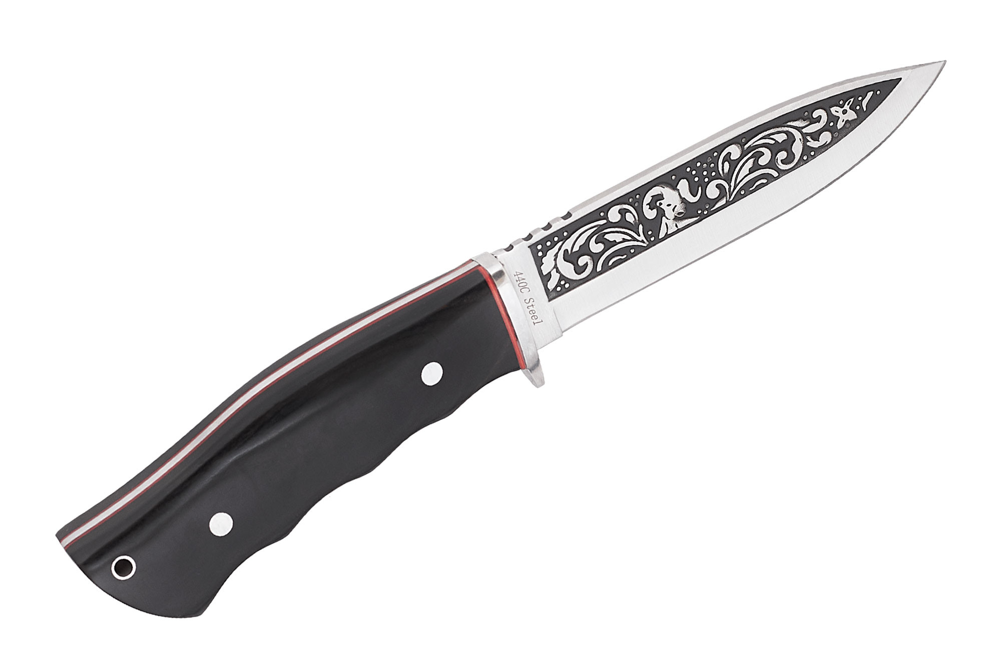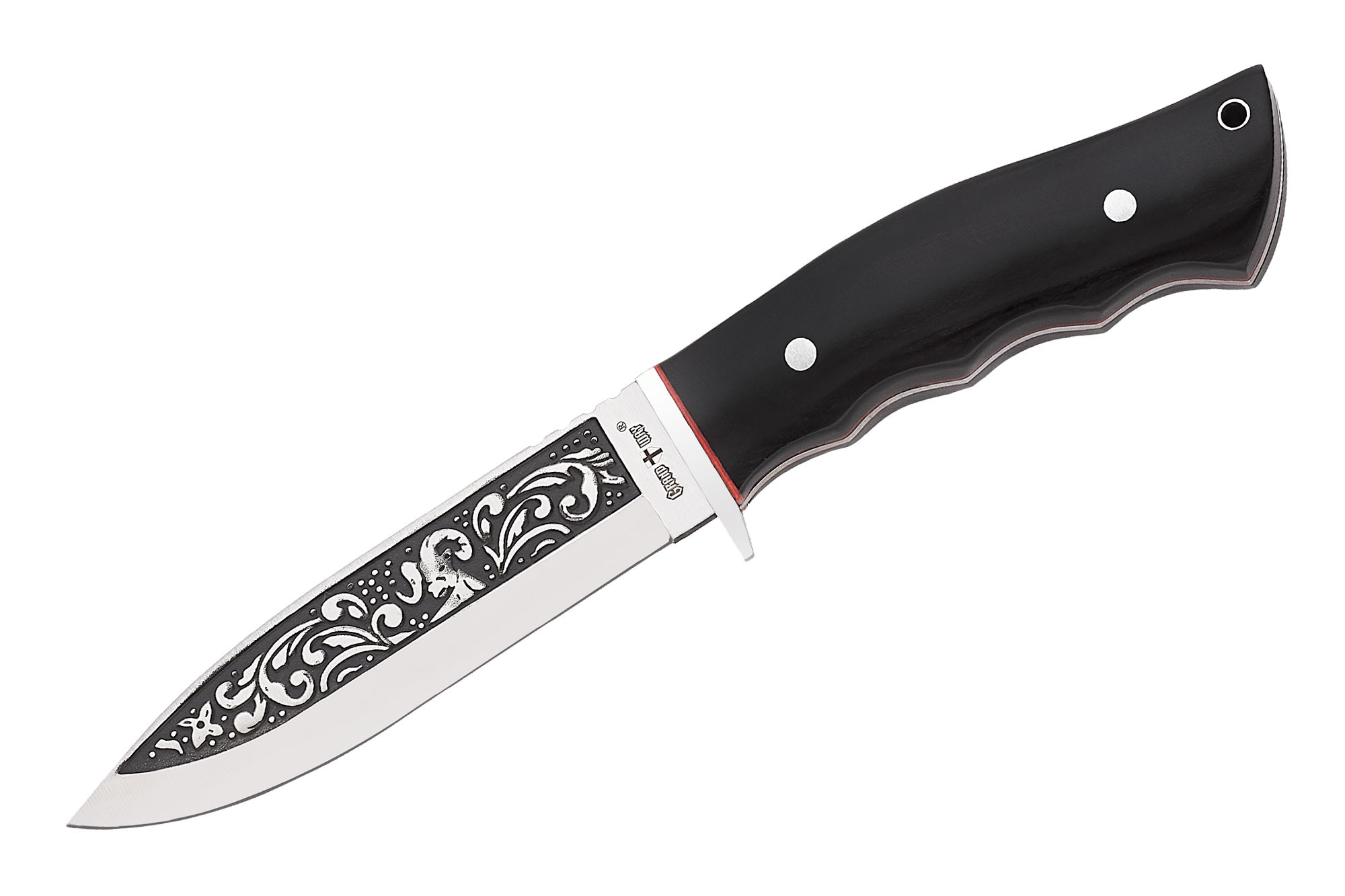 Конечно же, подарочный нож должен и выглядеть соответственно. С этой целью клинки украшаются декоративными гравировками, травлением, выштамповками. Как правило, с рисунками изображающими сцены охоты, дичь в условиях дикой природы, охотничьих собак, идущих по следу и т.п.