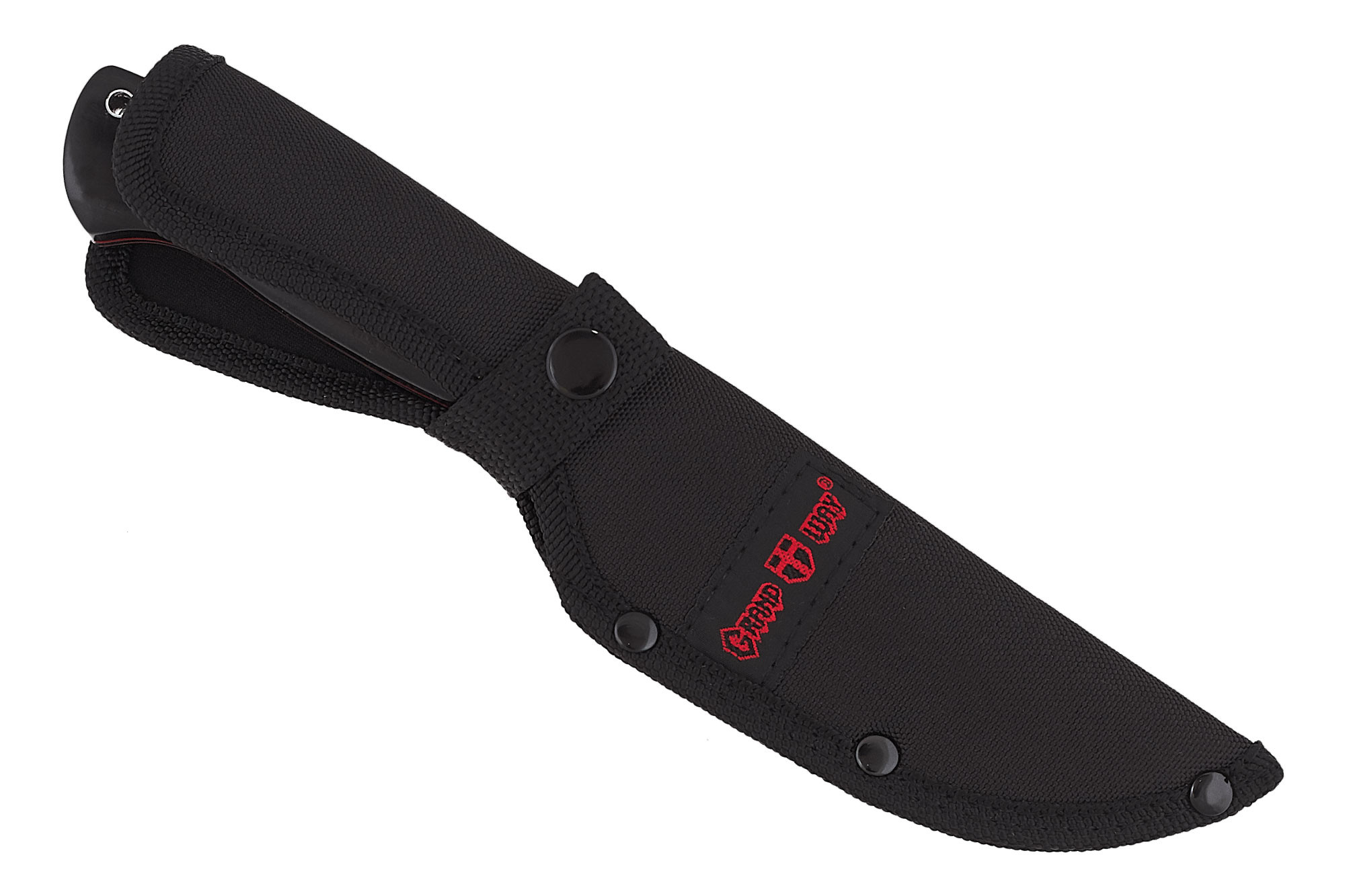 Grand Way FB1579 – охотничий нож в классическом понимании этого термина. У него удобная рукоять с надёжным упором для руки и темлячным отверстием. Его клинок изготовлен из прочной нержавеющей стали марки 440 С. Обух – прямой с удобной насечкой под большой палец в районе рукояти. Спуски – вогнутые. Режущая кромка заканчивается тупьём или рикассо, которое поможет не повредить больстер во время заточки.