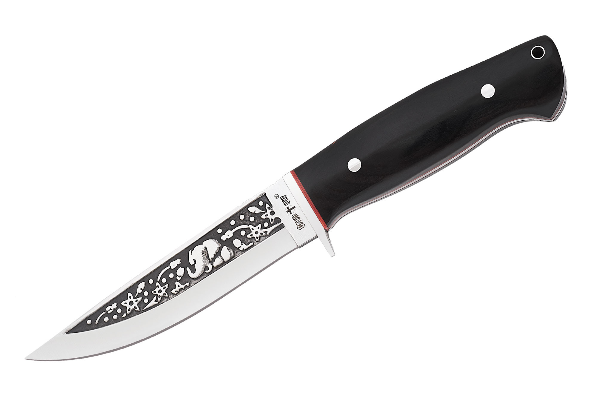 Такой внушительный и красивый нож определённо станет не только надёжным помощником любого настоящего охотника, но и отличным подарком!