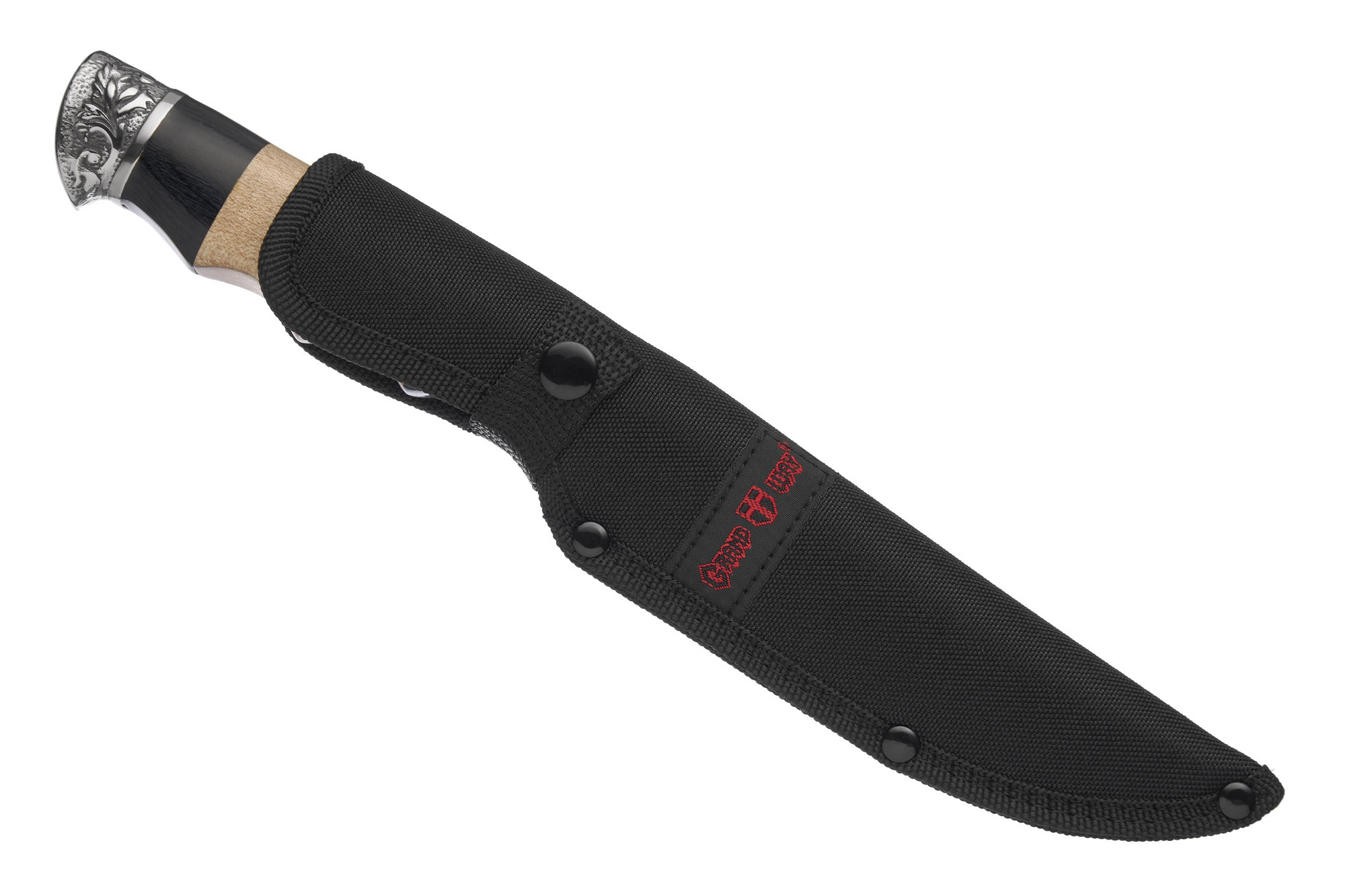 У комплекті з ножем ідуть міцні піхви з кордури. Широка шльовка дозволяє підвісити їх навіть на дуже широкий ремінь брюк.