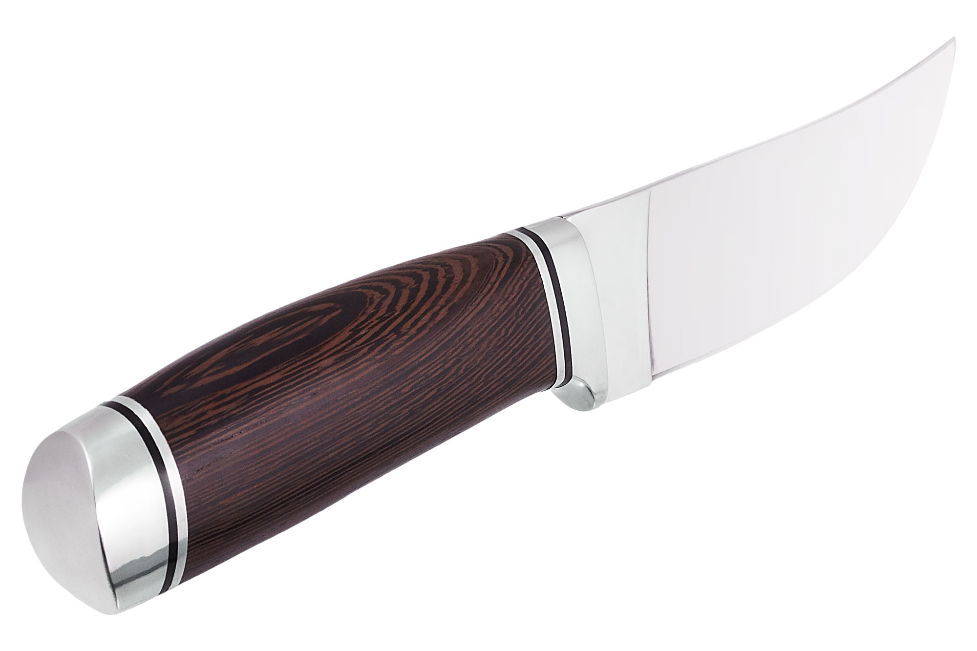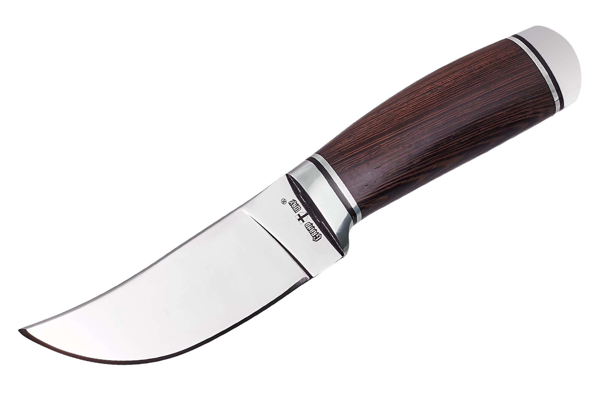 Ніж мисливський Grand Way FB 251 – фікс з клинком типу trailing point і дерев'яним руків'ям, що має металеве навершие. Ножі – типу трейлінг пойнт мають вістря характерно задерте вгору. Така особливість дозволяє клинку краще різати міцні щільні матеріали – шкіру чи тканину. Саме тому подібні мисливські ножі часто називають “скінерами”, тобто ножами для зняття шкіри.