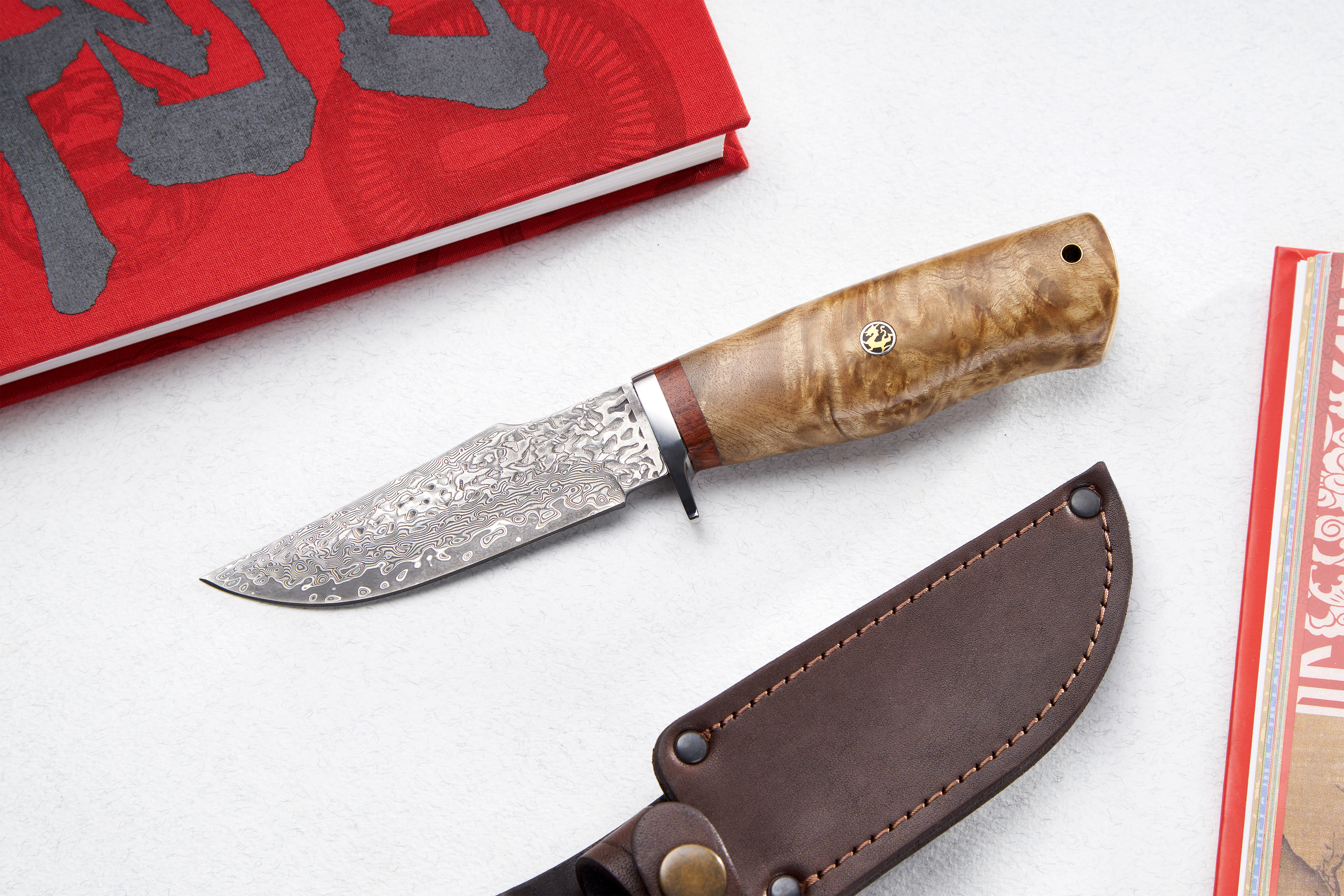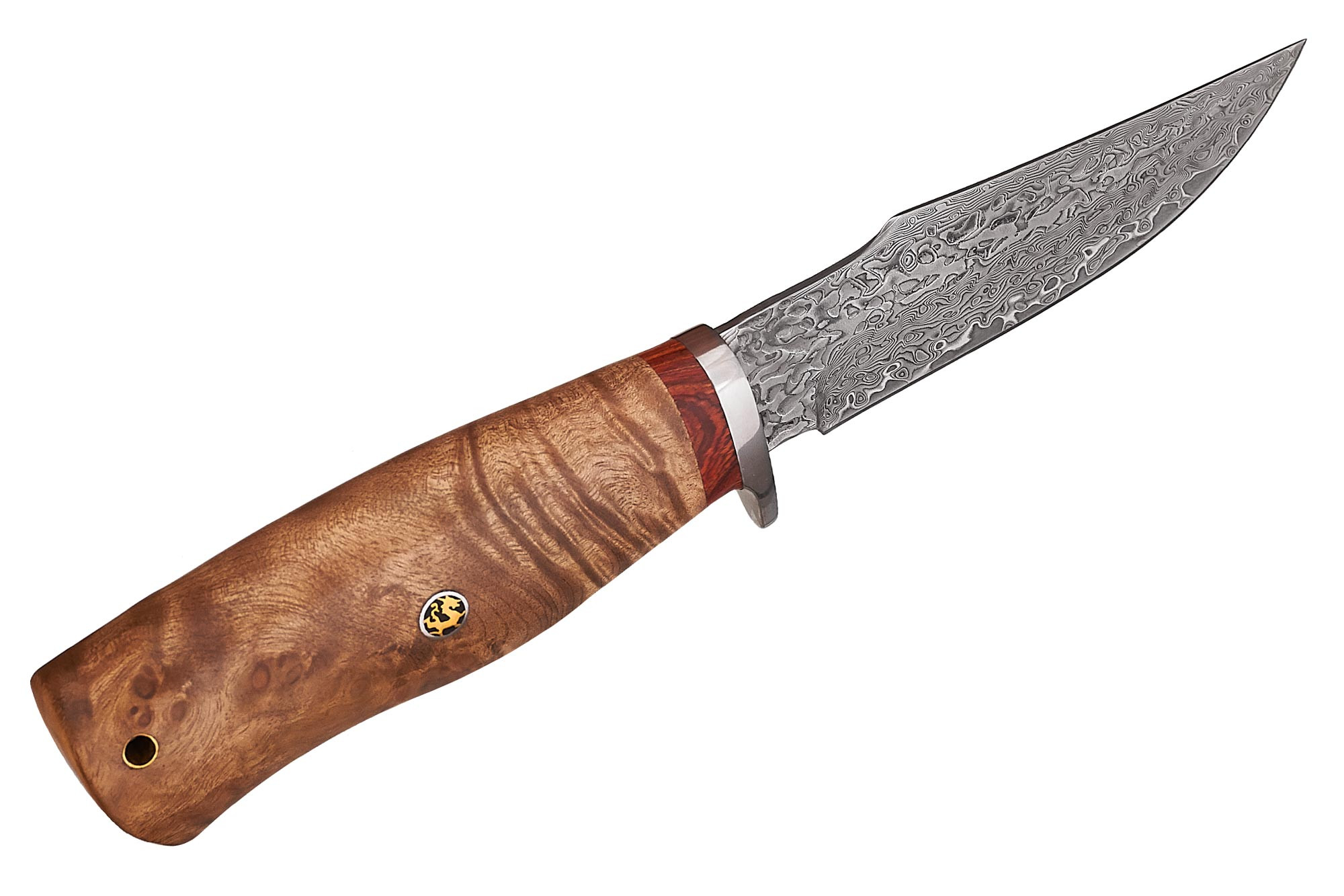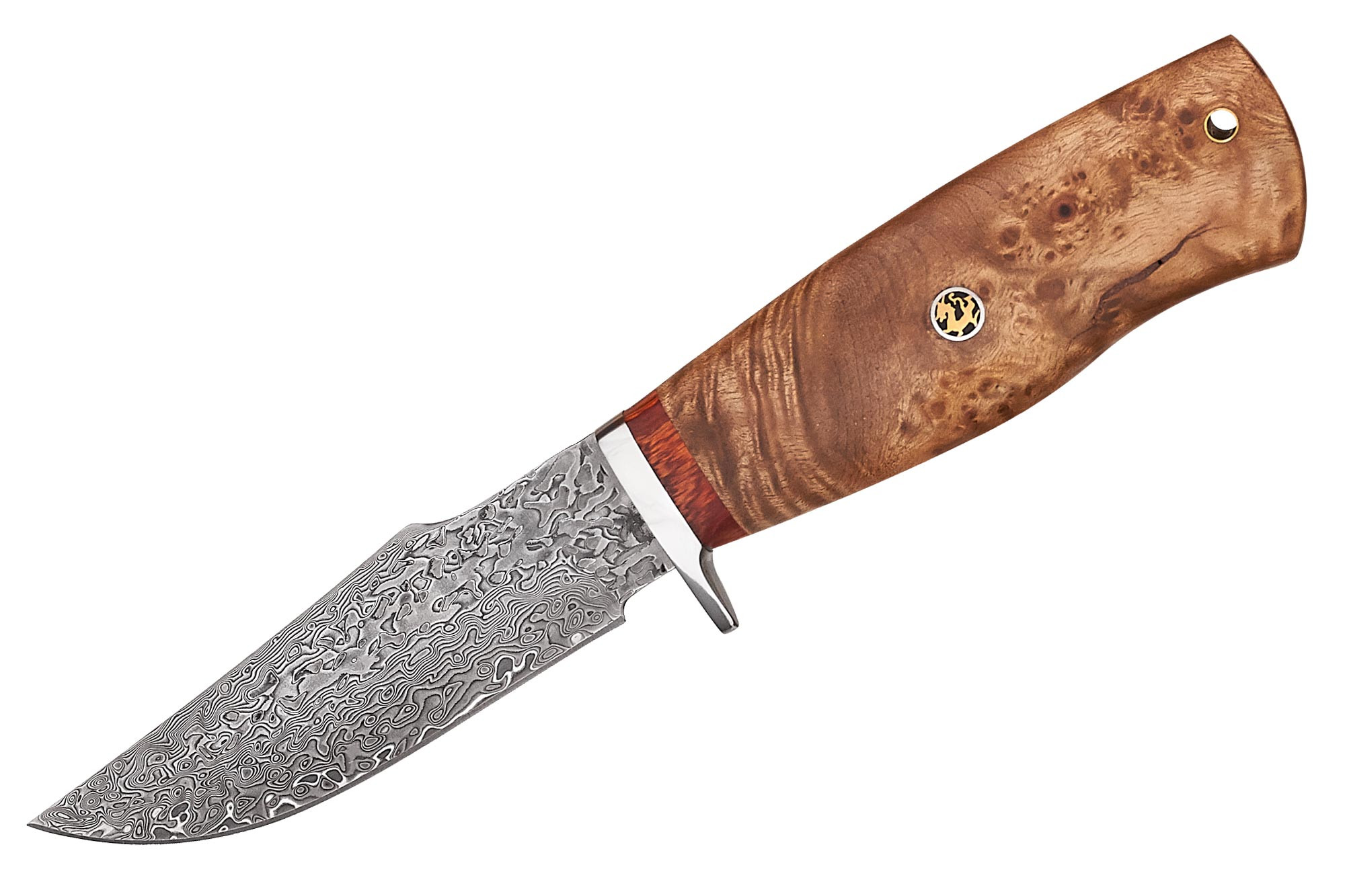 Монтаж ножа – всадной. Рукоять выполнена из капа, что в сочетании с дамасским клинком придаёт ножу действительно богатый, классический вид.