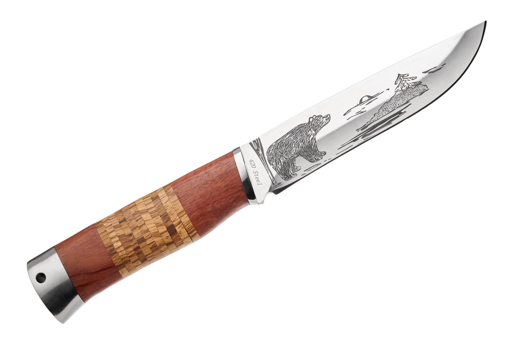 Сталь 420 має високу корозійну стійкість, що є ключовою перевагою для мисливських ножів, які експлуатуються в умовах вологост та у контакті з біологічними рідинамиі. Крім того, ця сталь дуже легка у догляді та заточуванні, що для похідного ножа – незаперечний плюс.
