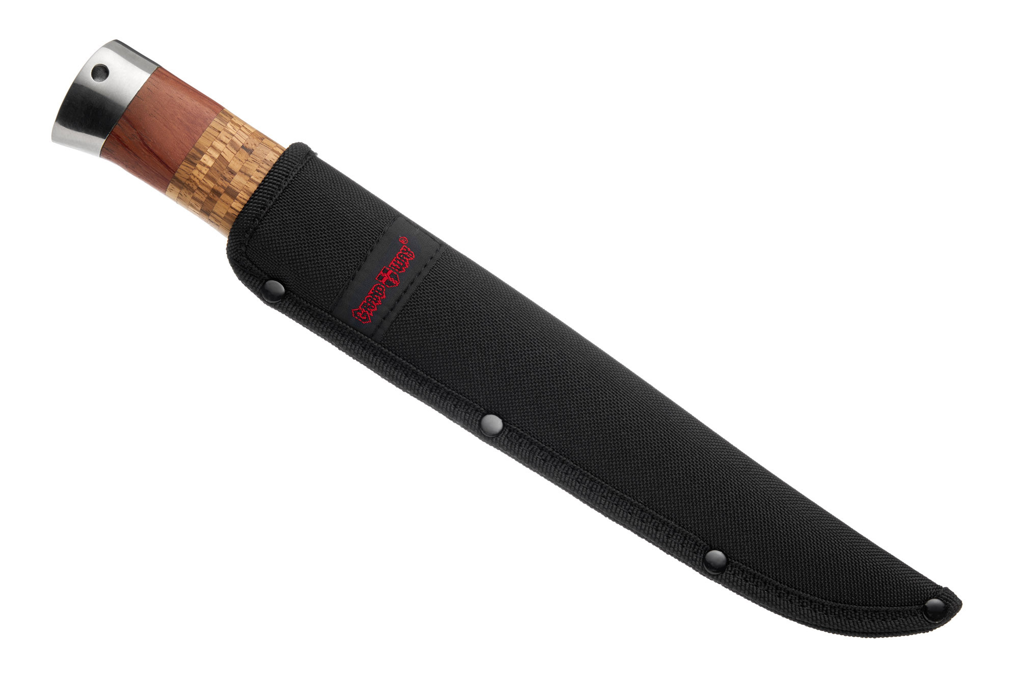 У комплекті з ножем ідуть міцні піхви з кордури. Широка шльовка дозволяє підвісити їх навіть на дуже широкий ремінь брюк.