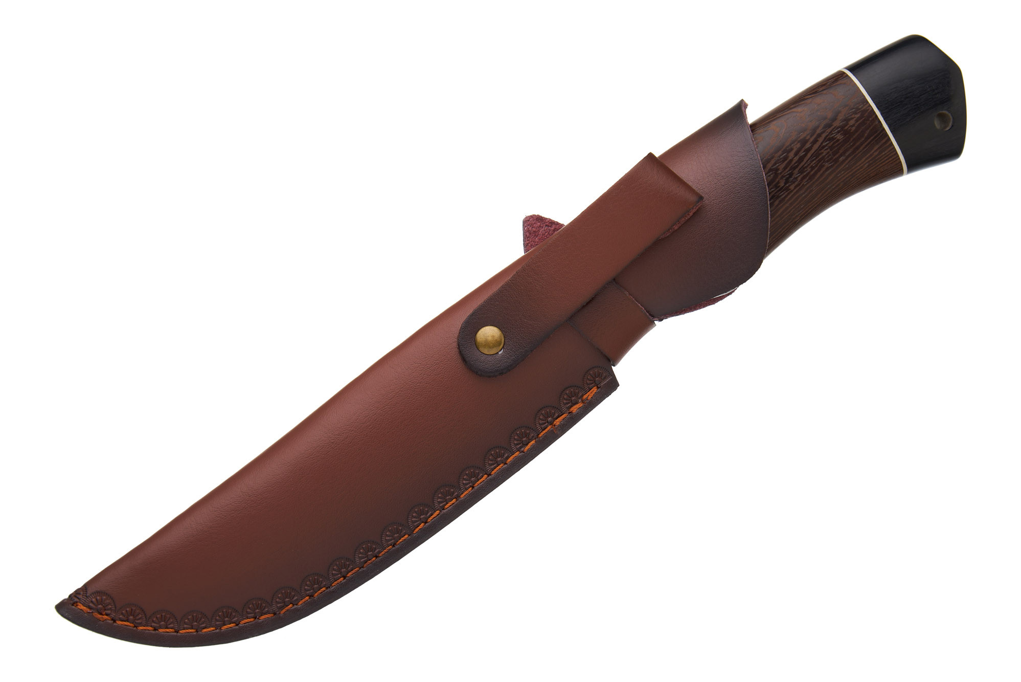 У комплекті з ножем ідуть міцні шкіряні піхви. Широка шльовка дозволяє підвісити їх навіть на дуже широкий ремінь брюк. Ніж у піхвах додатково фіксується застібкою на кнопці.