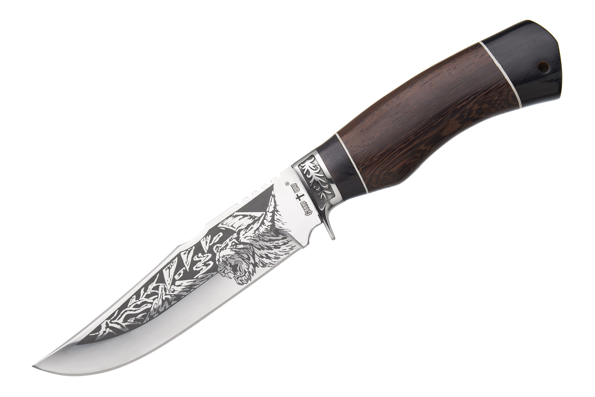 Деревина у якості матеріалу рукояті є не тільки красивим, але й приємним на дотик матеріалом. Воно не остигає на морозі, не розжарюється в спеку, має приємний для ока багатий колір та малюнок і чудово гармонує з декорованим прибором ножа.