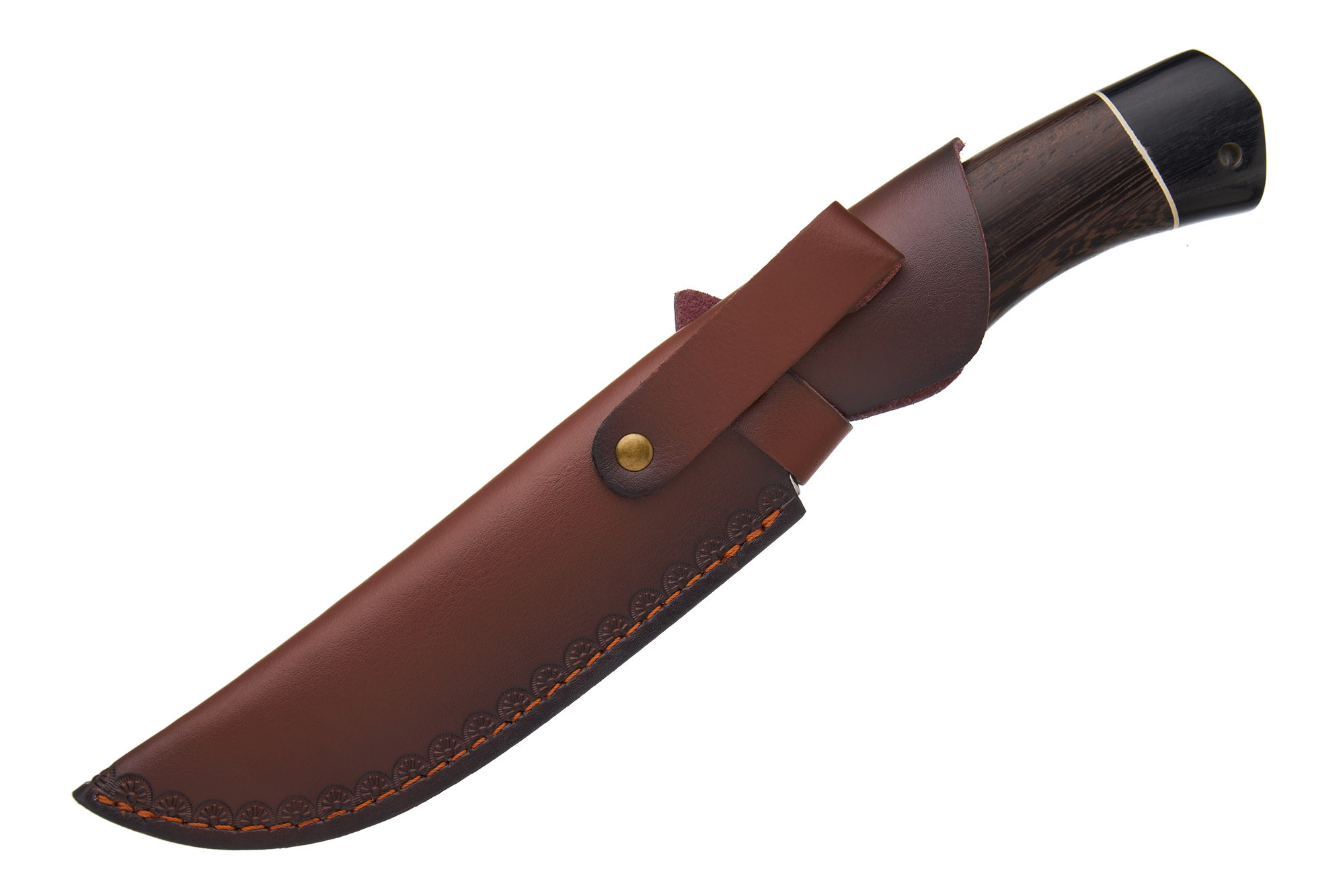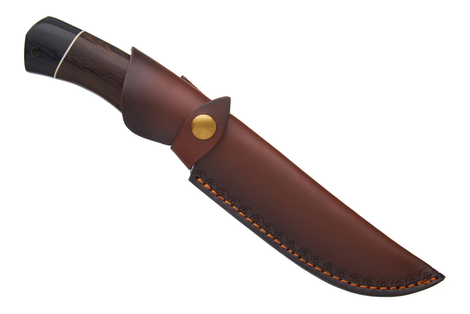 У комплекті з ножем ідуть міцні шкіряні піхви. Широка шльовка дозволяє підвісити їх навіть на дуже широкий ремінь брюк. Ніж у піхвах додатково фіксується застібкою на кнопці.