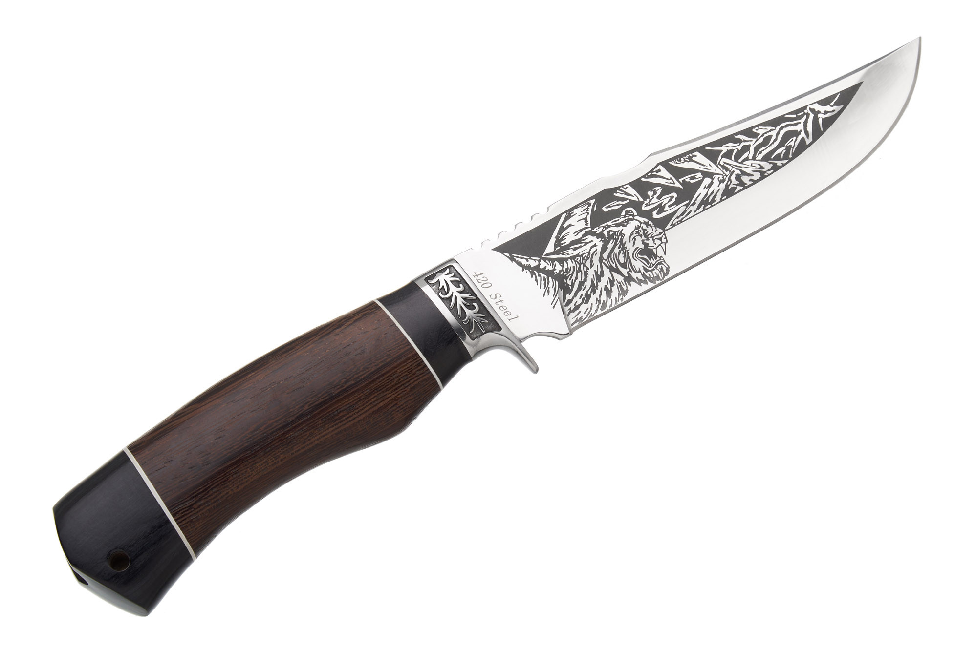 Клинок виготовлений із нержавіючої сталі марки 420. Цей сплав має багату історію та є доволі поширеним ножовим матеріалом. Однією з головних переваг цієї сталі є її виключно висока корозійна стійкість. Тому, наприклад, з нержавійки марки 420 часто роблять ножі для дайверів. Для мисливського ножа, що часто перебуває у умовах з підвищеною вологістю та постійно контактує з біологічними рідинами, такі якості також дуже корисні.