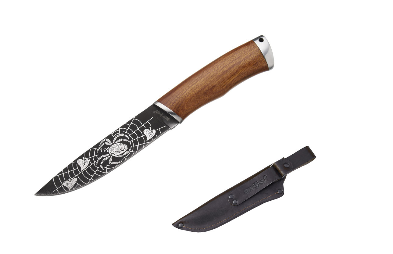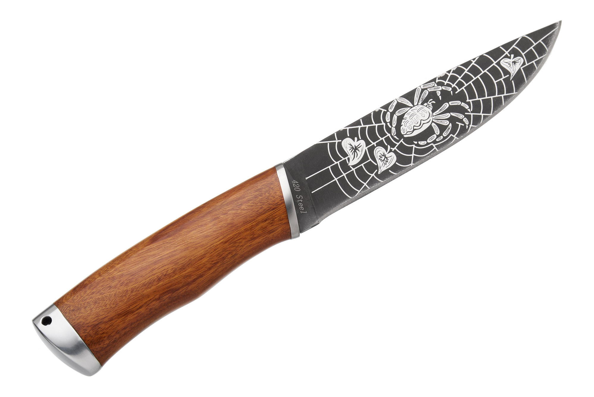Деревина у якості матеріалу рукояті є не тільки красивим, але й приємним на дотик матеріалом. Воно не остигає на морозі, не розжарюється в спеку, має приємний для ока багатий колір та малюнок і чудово гармонує з декорованим прибором ножа.
