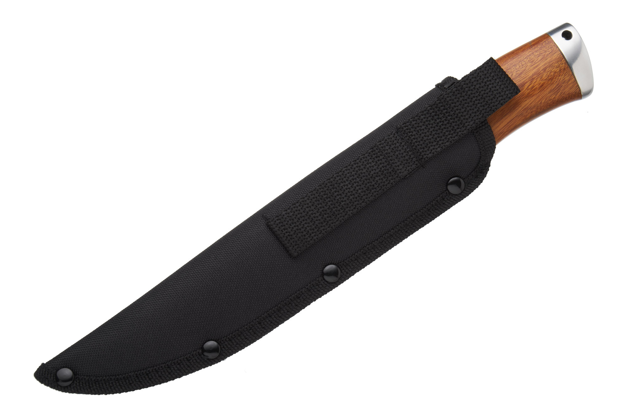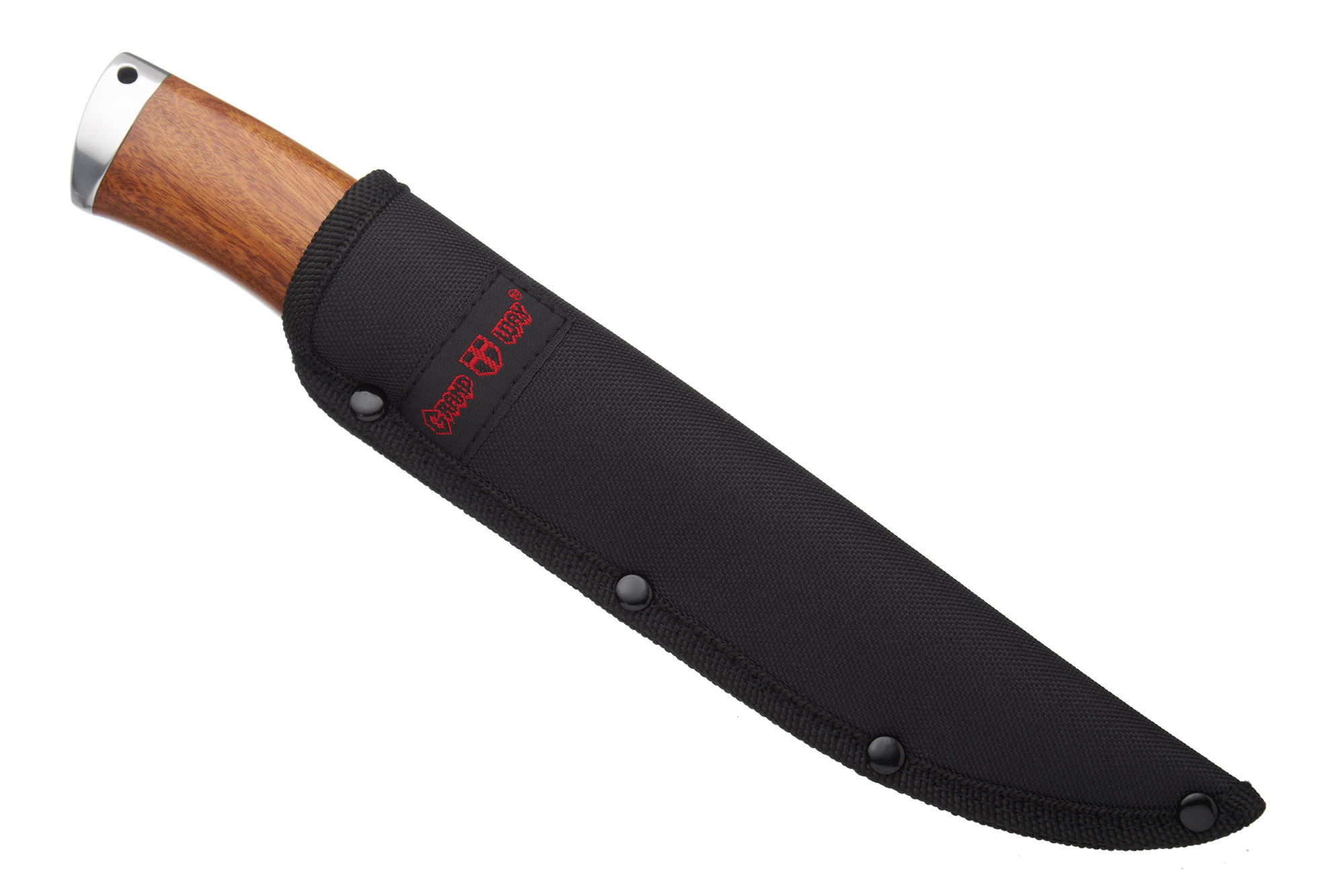 У комплекті з ножем ідуть міцні піхви із плотної тканини на кшталт кордури. Широка шльовка дозволяє підвісити їх навіть на дуже широкий ремінь брюк.
