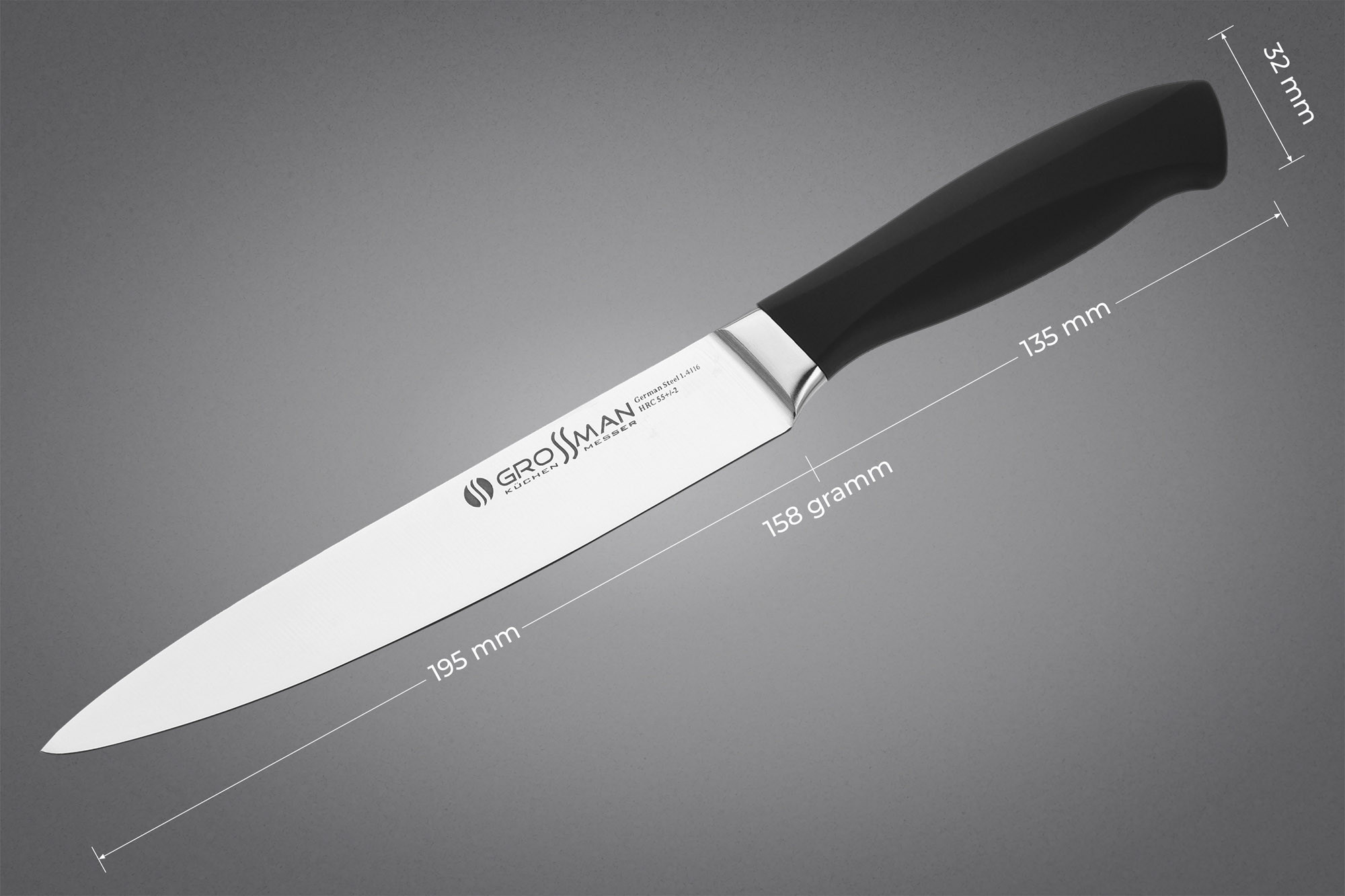 Ножі та клівера зі сталі 1.4116 – приклад справжньої європейської якості. Розумне та надійне вкладення ваших грошей. Ножі серії GROSSMAN ELITE PRO порадують вас у роботі та правильно прослужать вам довгі роки.