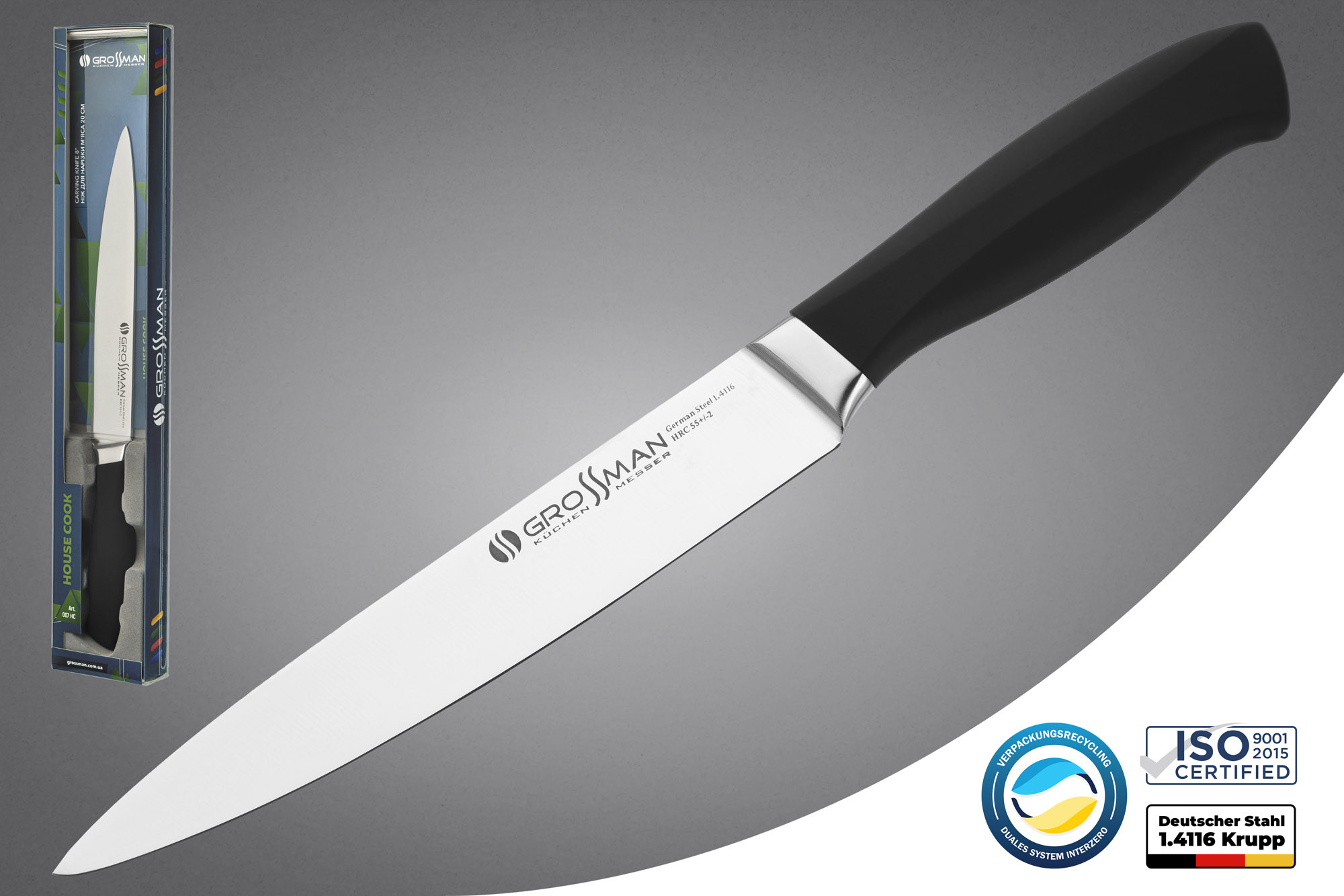 Якщо вам на вашій кухні потрібен просто і надійно влаштований ніж, який не вимагатиме особливого догляду. Якщо при цьому ви хочете, щоб цей ніж прослужив вам довго і по-справжньому, але при цьому, щоб і коштував він розумних грошей (себто недорого) GROSSMAN House Cook буде для вас чудовим вибором.