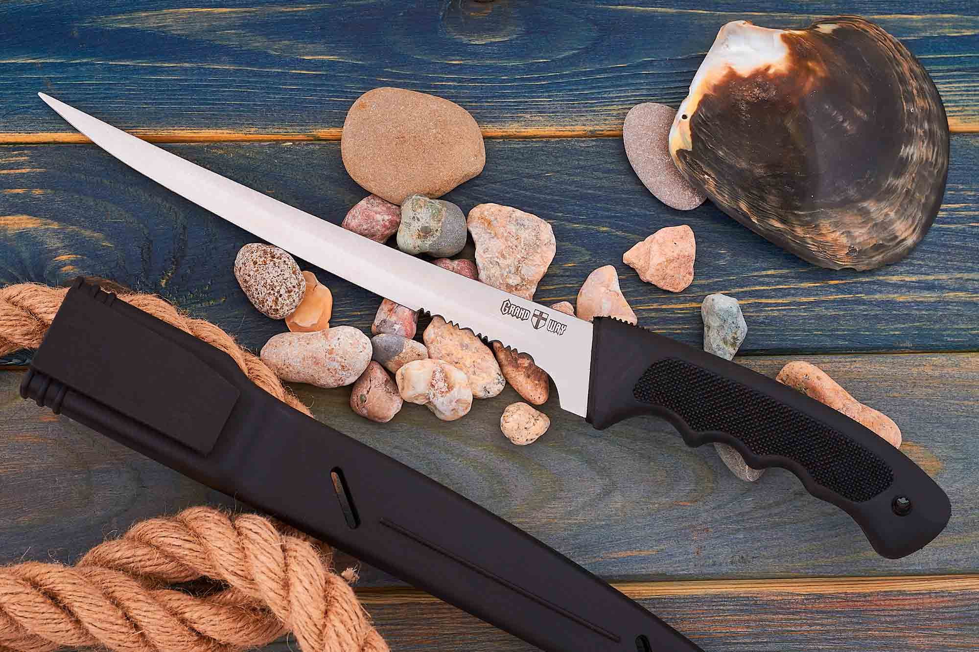 Рыбацкий нож Grand Way 18209 разрабатывался специально под любителей рыбной ловли и с учетом их пожеланий, которыми обусловлена специфическая форма ножа и конструкция ножен. Нож имеет длинный, узкий клинок которым очень удобно выполнять работы по потрошению, чистке, разделке рыбы, а также филированию.