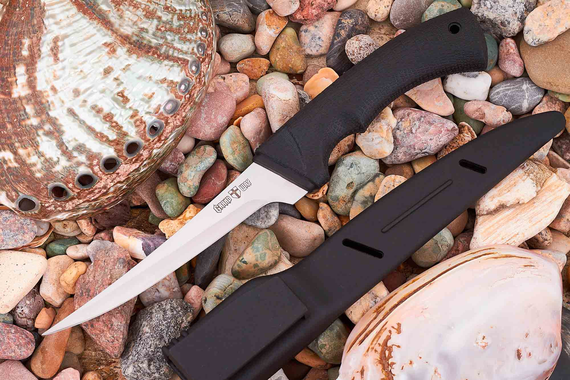 Отличный рыбацкий многоцелевой нож. Рукоять из эластрона, удобные ножны – вот те моменты, на которые стоит обратить внимание в модели рыбацкого ножа Grand Way 18210. В комплект поставки ножа входят пластиковые ножны с ременной скобой, с помощью которой, ножны возможно закрепить на поясном ремне. Ножны снабжены дренажными и вентиляционными отверстиями, что для рыбацкого ножа, работающего в условиях повышенной влажности - несомненный, большой плюс.