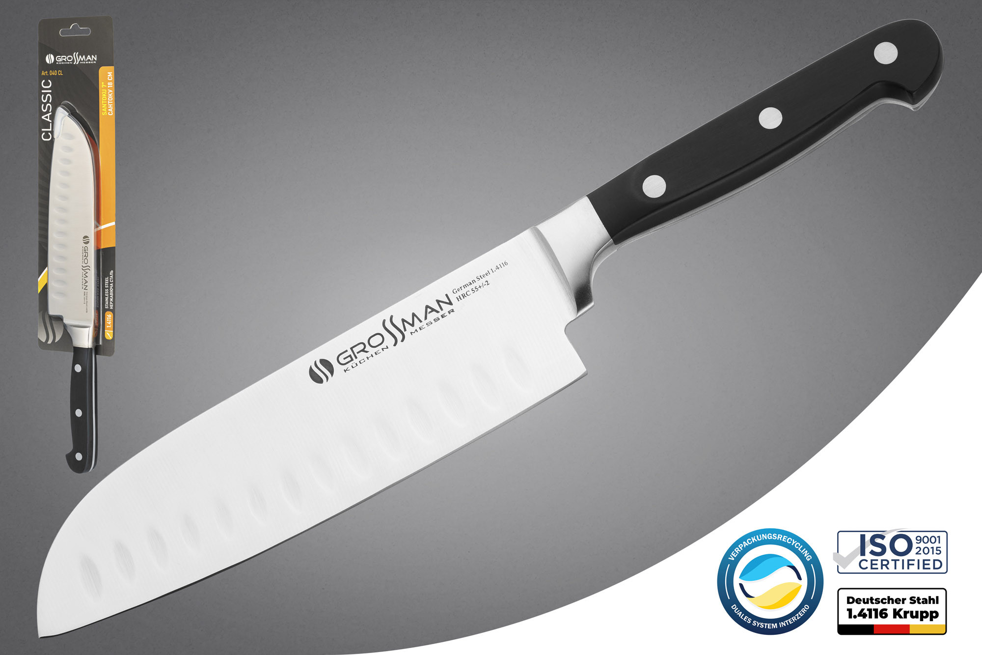 Звичайно, кожен кухар скаже, що кухонний ніж має бути якісним ножем. І нехай, на домашній кухні ковані ексклюзиви для профі часто виглядають деякою надмірністю, все ж таки, розумним буде купити ніж сантоку з якісної нержавіючої сталі за розумною ціною. І саме таким оптимальним варіантом, що поєднує розумну ціну та гідне виконання, є кухонні ножі від GROSSMAN.
