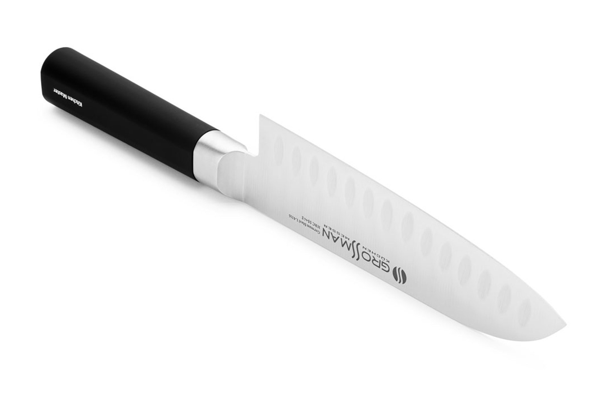 Звичайно, кожен кухар скаже, що кухонний ніж має бути якісним ножем. І нехай, на домашній кухні ковані ексклюзиви для профі часто виглядають деякою надмірністю, все ж таки, розумним буде купити ніж сантоку з якісної нержавіючої сталі за розумною ціною. І саме таким оптимальним варіантом, що поєднує розумну ціну та гідне виконання, є кухонні ножі від GROSSMAN.