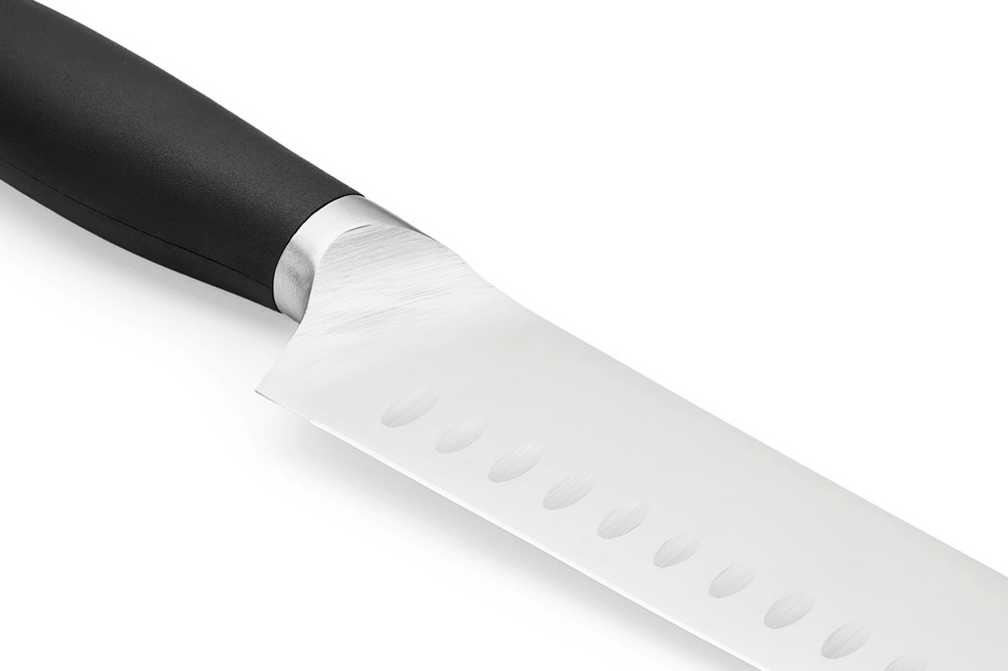 Цікавою особливістю ножа сантоку є добре помітні повітряні кишені на бічних поверхнях клинка. Ці поглиблення запобігають прилипання матеріалу, що нарізається, до леза.