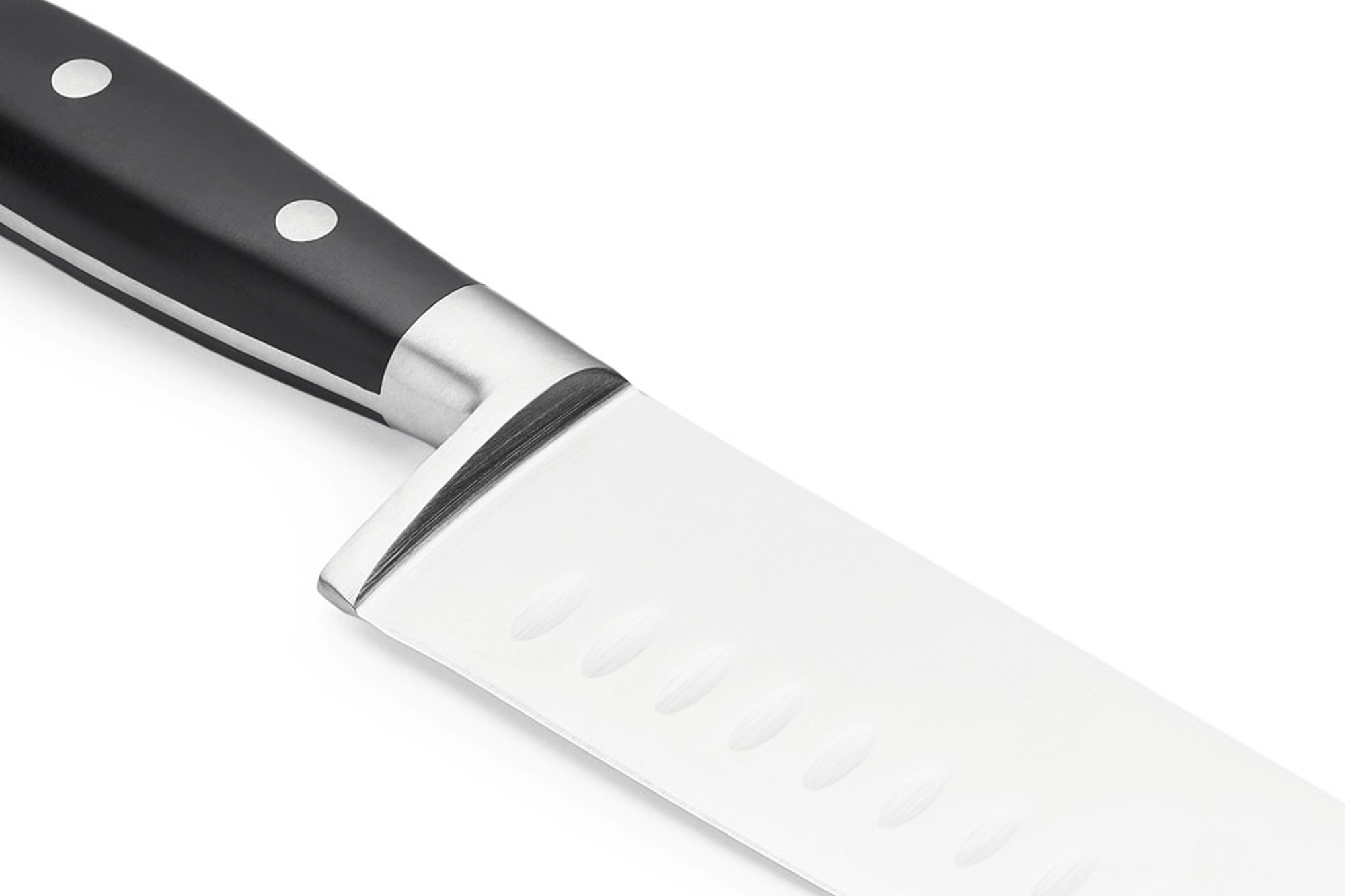 Цікавою особливістю ножа сантоку є добре помітні повітряні кишені на бічних поверхнях клинка. Ці поглиблення запобігають прилипання матеріалу, що нарізається, до леза.
