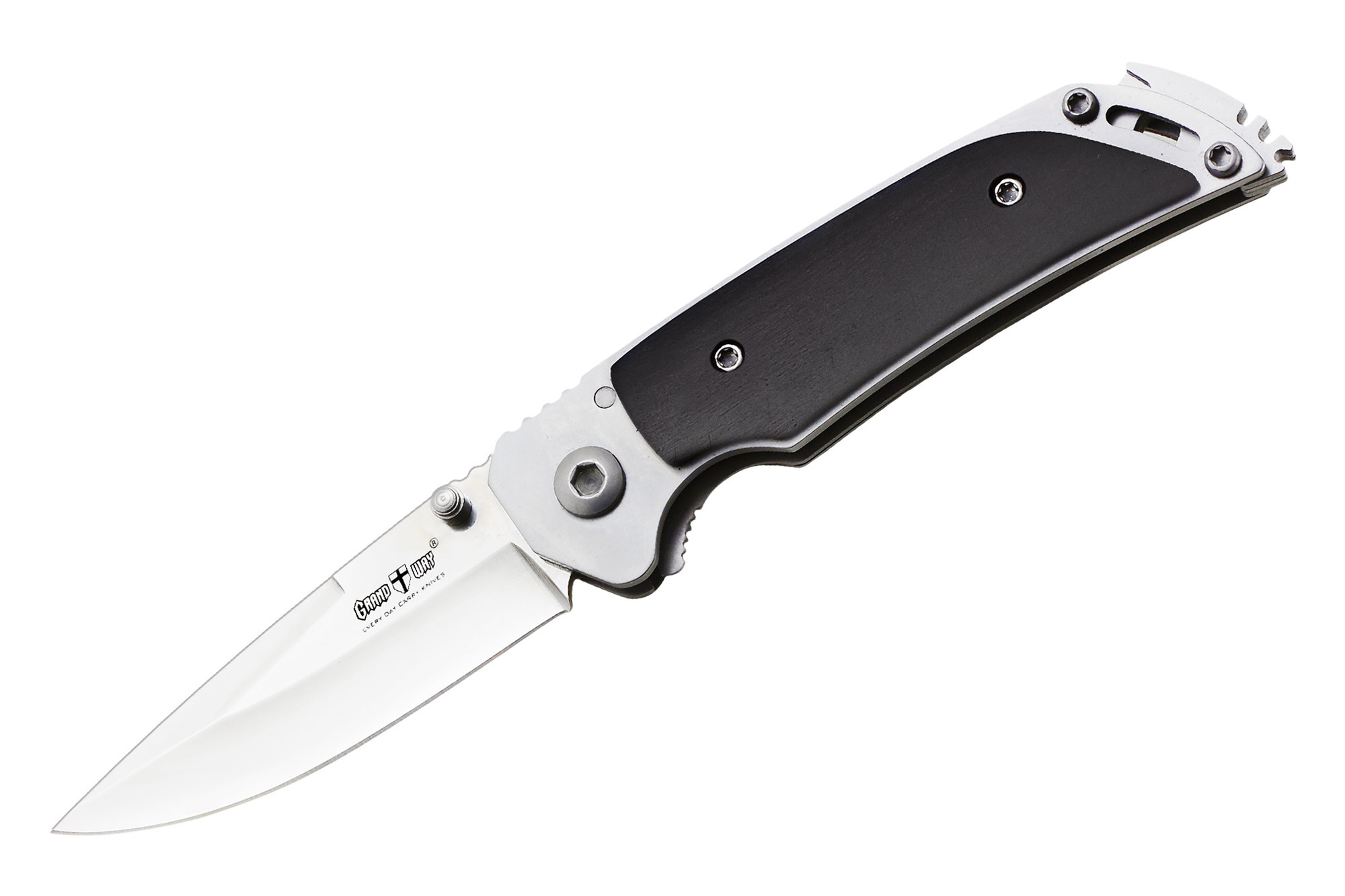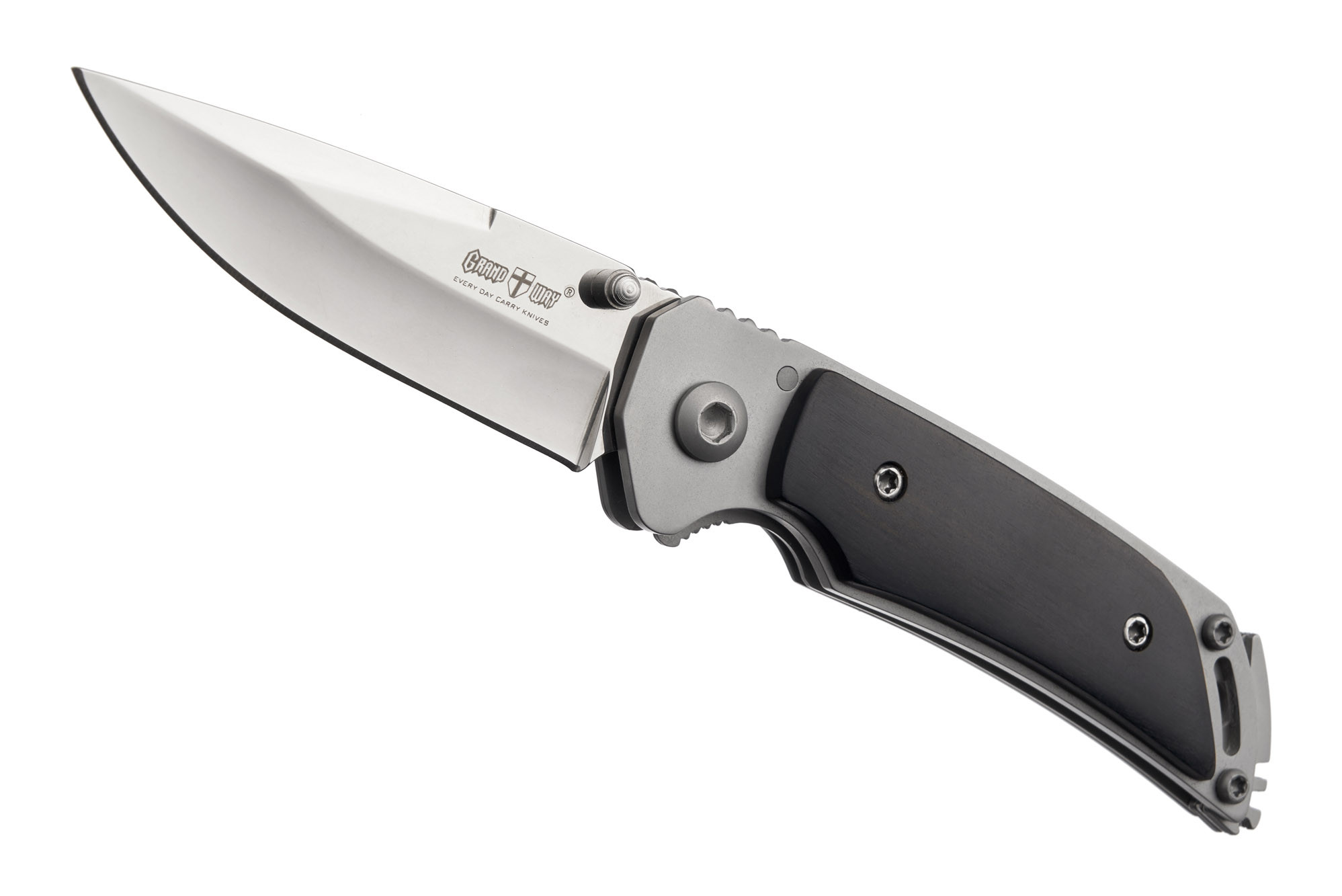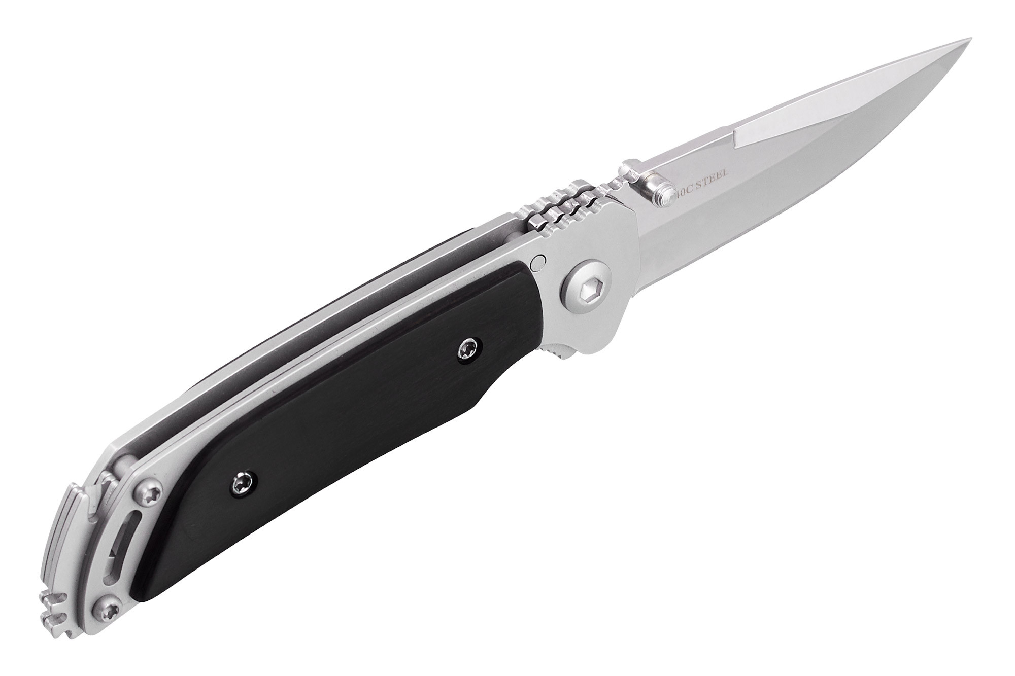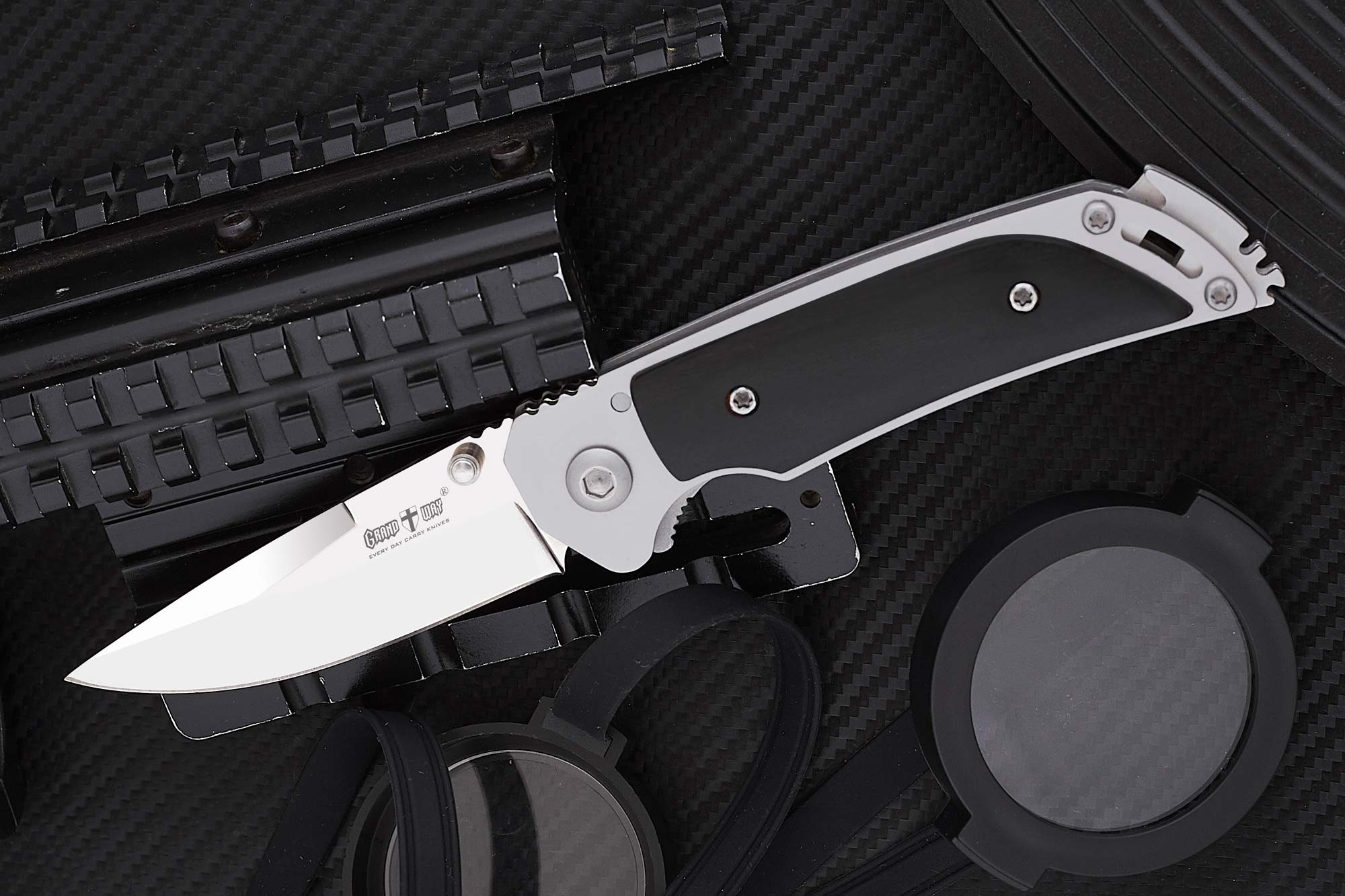 Складной многофункциональный нож в современном стиле, с дополнительным лезвием. Клинок этого ножа изготовлен из стали марки 440С. Сталь 440с является современной высокоуглеродистой нержавеющей сталью. Визитная карточка 440С высокая износостойкость и твердость, которая обеспечивается высоким содержанием углерода и легированием молибденом и ванадием. Химическую стойкость стали придает высокое содержание хрома, придающего дополнительную износостойкость. Эта сталь несколько сложна в заточке, такие ножи плохо правятся мусатом, и придется потратить немало сил, чтобы переточить такой клинок, но благодаря ее износостойкости делать это придется намного реже, чем в случае использования более дешевых сталей.