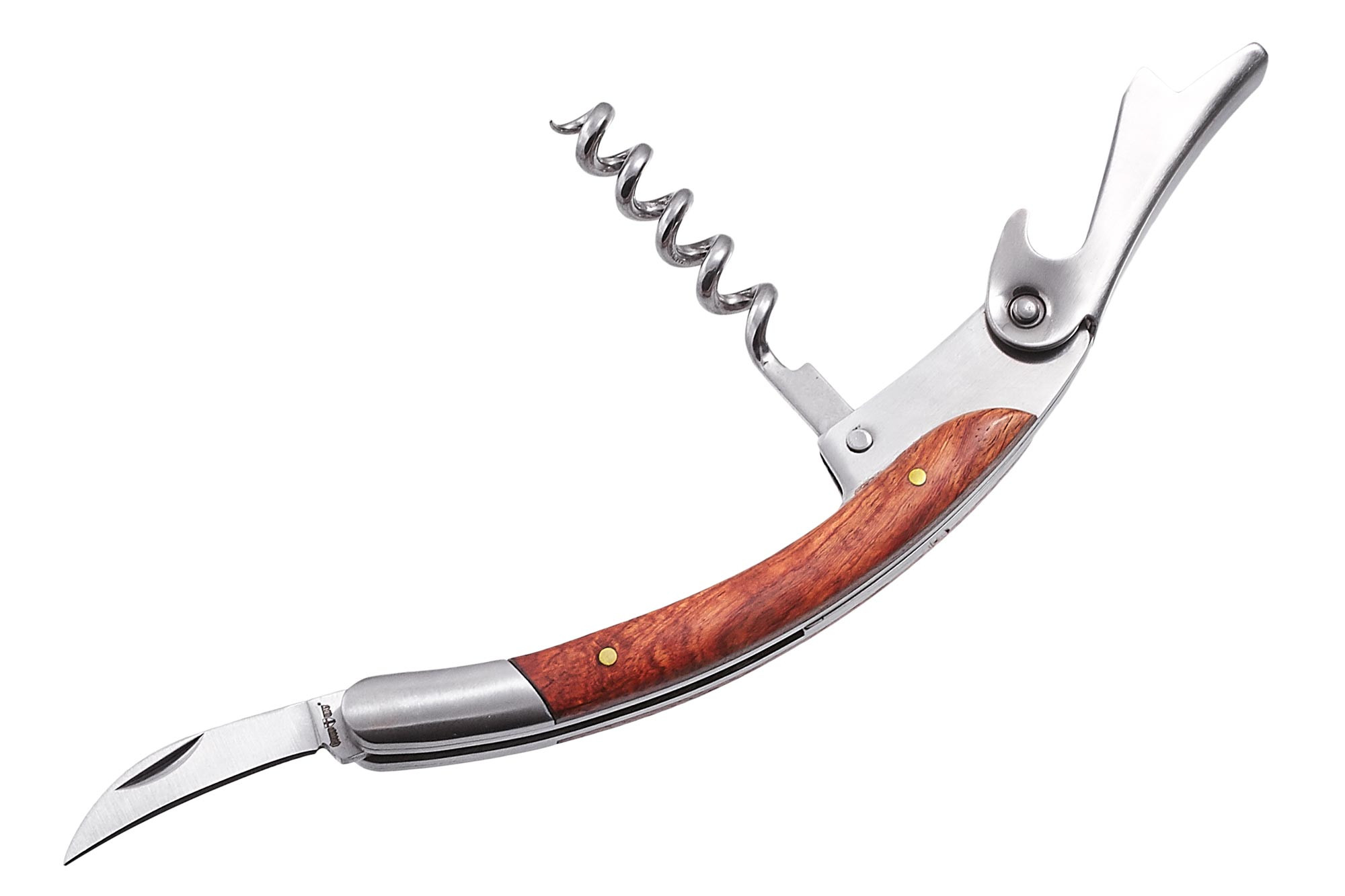 Небольшой изогнутый, когтеобразный клинок, скорее, предназначен для помощи при открытии винных бутылок с пластиковыми крышками, счищения бумаги или фольги с горлышка бутылки, а не для нарезки. Удобен он и для открытия различных упаковок, например, тех же конфетных коробок. Или если у вас в распоряжении несколько бутылок в картонной таре.