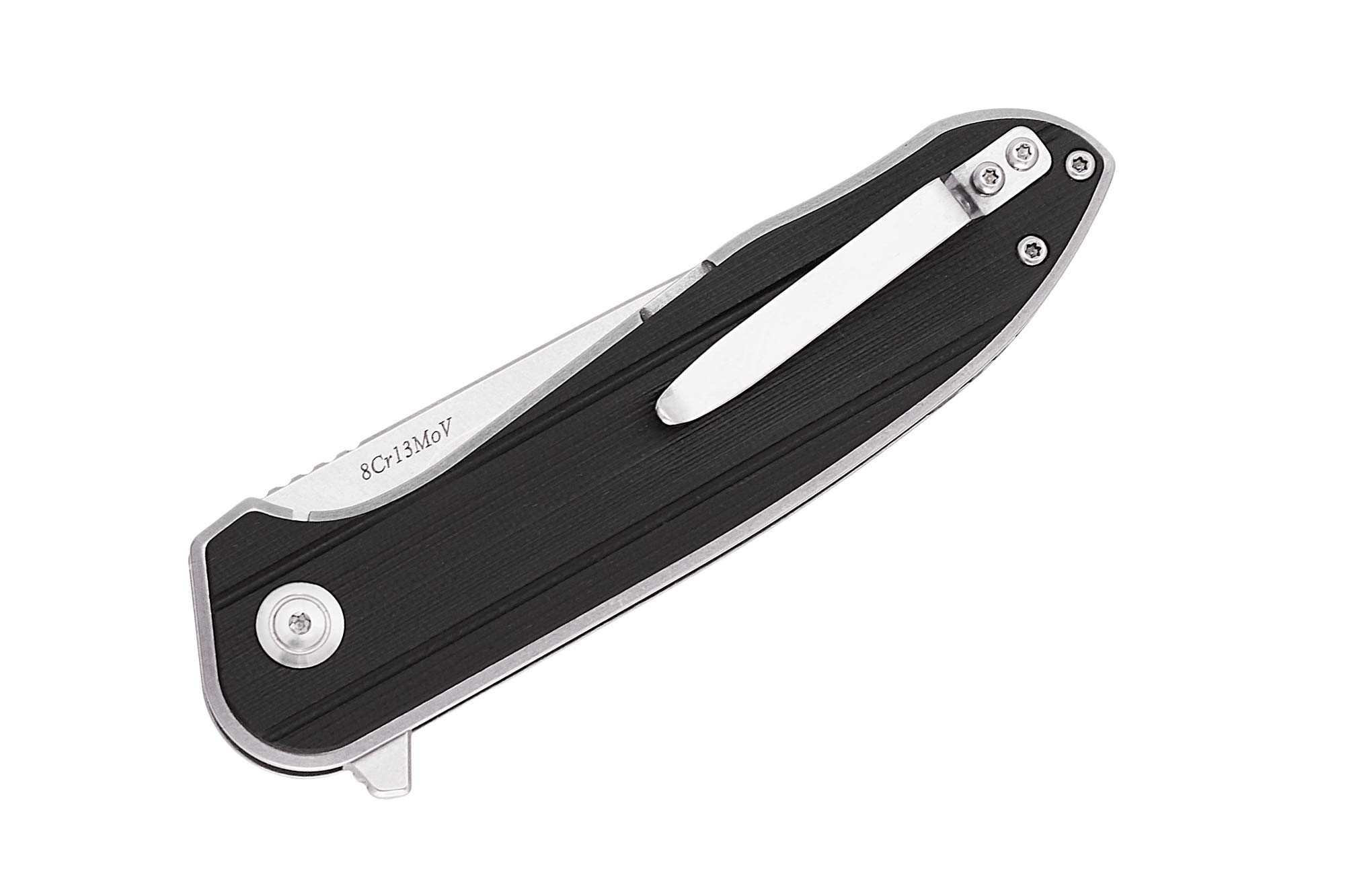 - На рукояти находится удобная клипса, позволяющая надёжно закрепить нож на кармане.