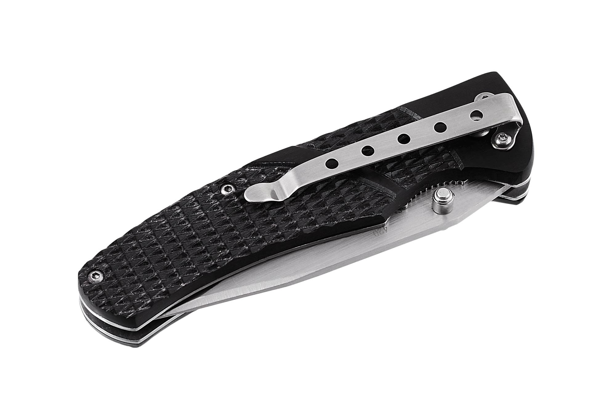 За надежность раскладывания и фиксации клинка тут отвечает классическая разновидность ножевых замков – лайнер-лок. Замок, проверенный временем, надежный, и позволяющий управляться с ножом одной рукой, и не особо боящийся загрязнения. Дополнительное удобство для левшей и правшей – нож открывается одной рукой за двусторонний шпенек клинка.