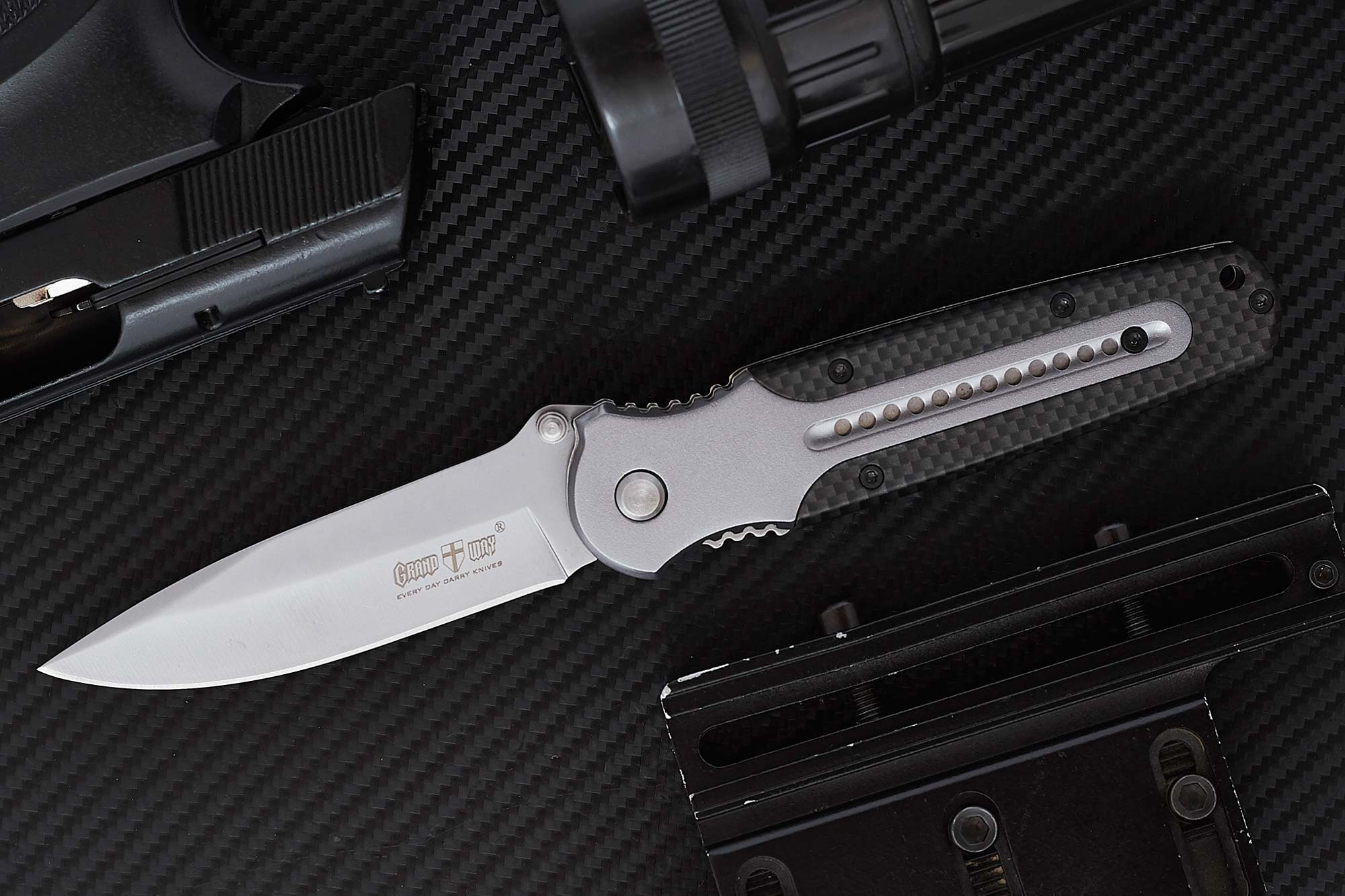 Замечательный дизайн металлической рукояти не только оживляет холодный метал, но и делает поверхность более шероховатой и удобной для удержания. Яркий, стильный, одновременно хищный и незаметный нож на каждый день.