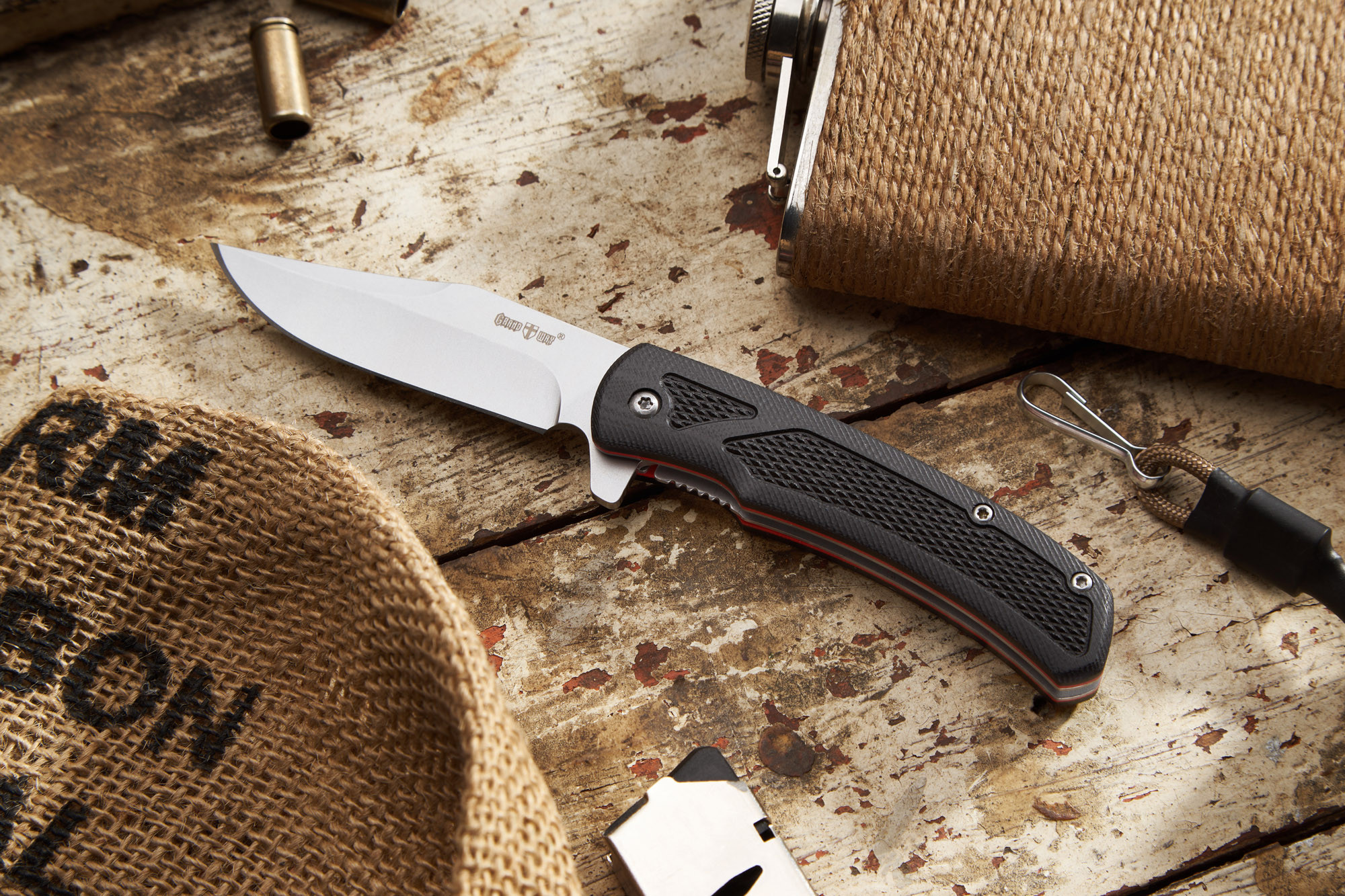 - Розташований на клинку плавець-фліпер допоможе швидко розкрити ніж однією рукою, та виконає роль додаткового упору для пальців під час роботи.