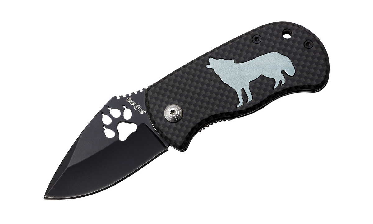 Рукоять ножа изготовлена из стальных пластин скрепленных винтами. Металлические накладки на рукоять обеспечивают прочность, имеют приятное нескользкое покрытие и потрясающий дизайн с фрезерованным изображением волка. В открытом положении клинок фиксируется надежным и отработанным в производстве замком Liner Lock, который замечательно себя зарекомендовал как простое, надежное и неприхотливое устройство фиксации клинка. Он устойчив к загрязнению и позволяет легко складывать нож одной рукой. Для постоянного ношения нож оснащен съемной стальной клипсой удачной формы. Нож может быть легко открыт одной рукой при помощи отверстия в клинке стилизованного под звериную лапу. Очень яркая и хищная модель. Нож очень легкий, надежный и неприхотливый.