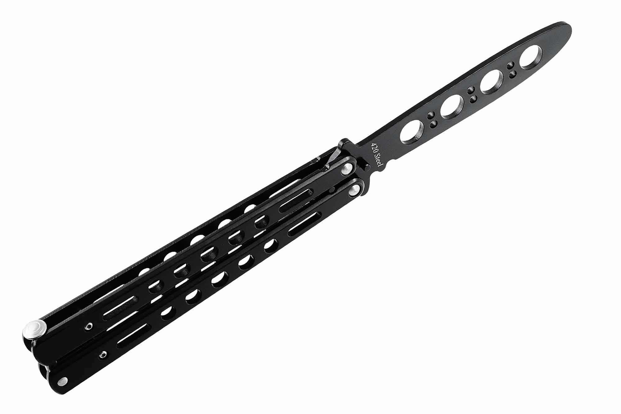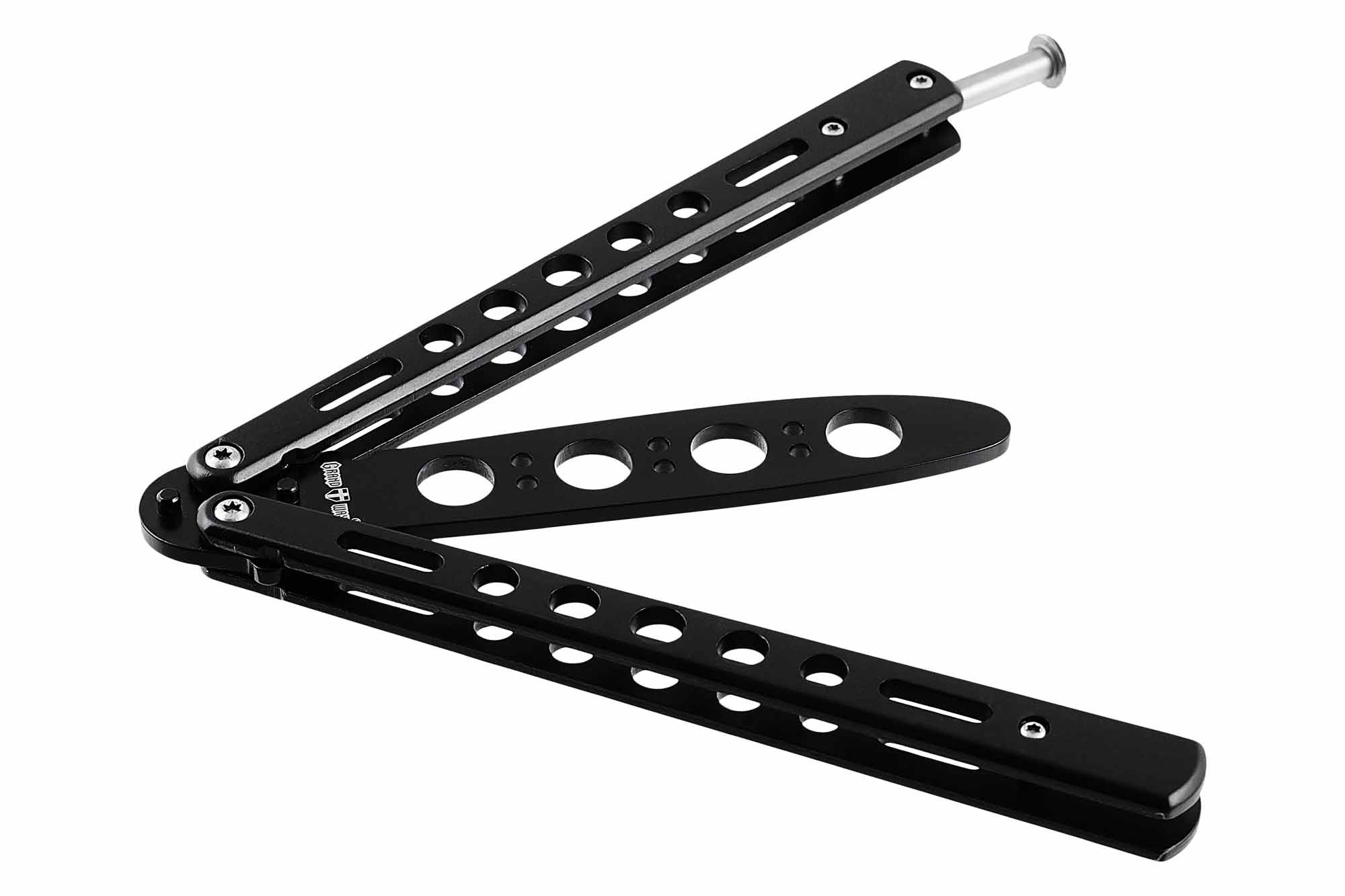 Тренировочный нож-балисонг K10-B – это качественное приспособление, позволяющее тренироваться в флиппинге и отрабатывать множество других приемов обращения с таким типом ножей. Как такового клинка у него нет – его роль играет пластина, отверстиями, которые несут как декоративную, так и практическую функцию: облегчать вес.Оплата и доставка