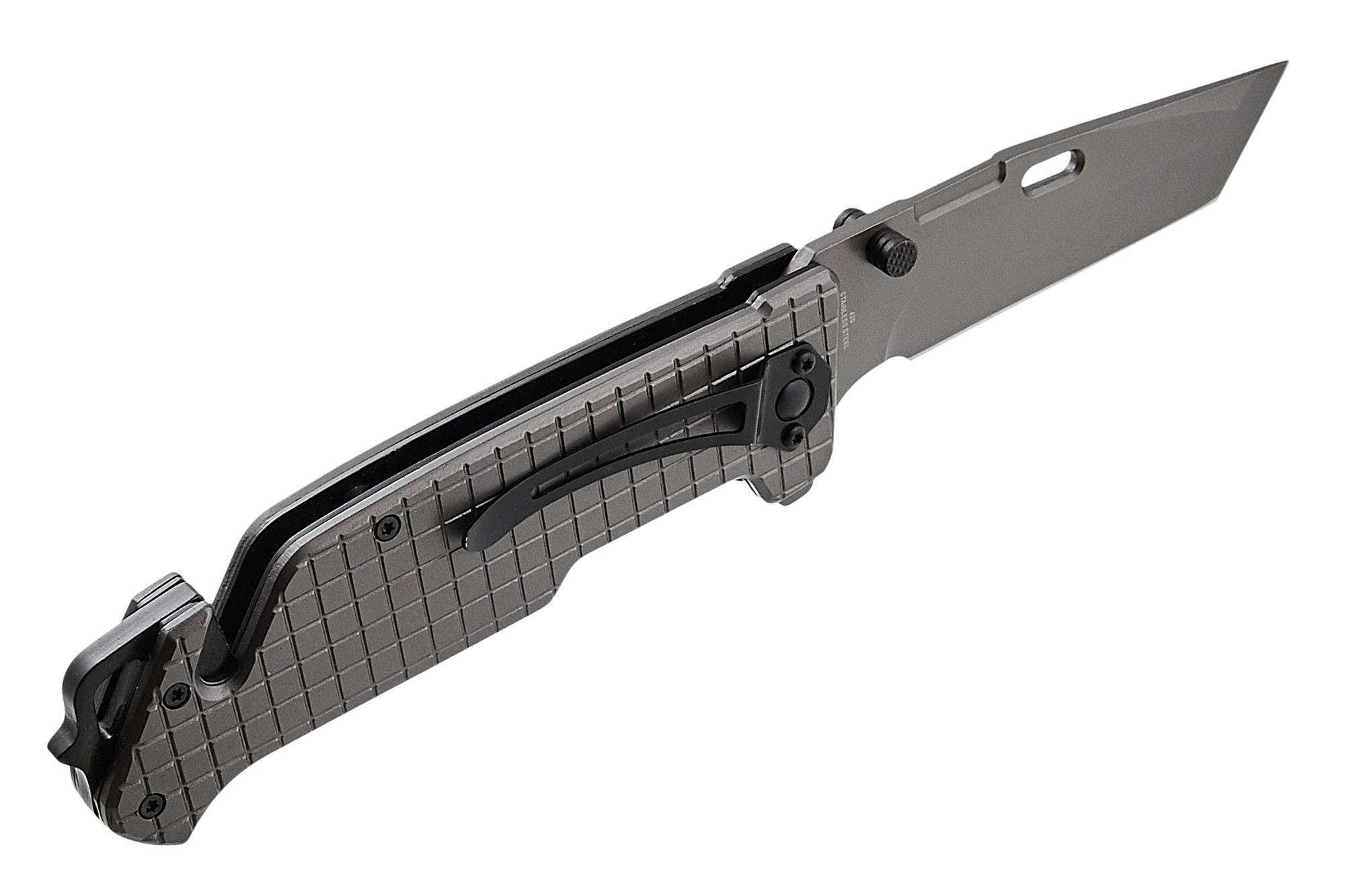 Данный нож не является холодным оружием, так как не соответствует многим признакам х. о. Ключевыми параметрами данного ножа является длина лезвия до шпенька, который является ограничителем, менее 90 мм. Складной нож 13069 – это вариация на тему милитари-ножа и инструмента спасателя-полицейского. На выходе мы имеем харизматичный, увесистый складник- полуавтомат с замком лайнер-лок, флиппером и клинком в стиле американское танто (american tanto).Поскольку перед ножами подобного толка ставятся определенные задачи, то это напрямую отражается на функциональности. Нужна прочность и надежность? – в качестве механизма запирания клинка используется замок лайнер-лок. Моментально раскрыть нож? – Конструкцией ножа предусмотрен подпружиненный клинок, для раскрытия которого, достаточно слегка надавить на плавничок на спине ножа.