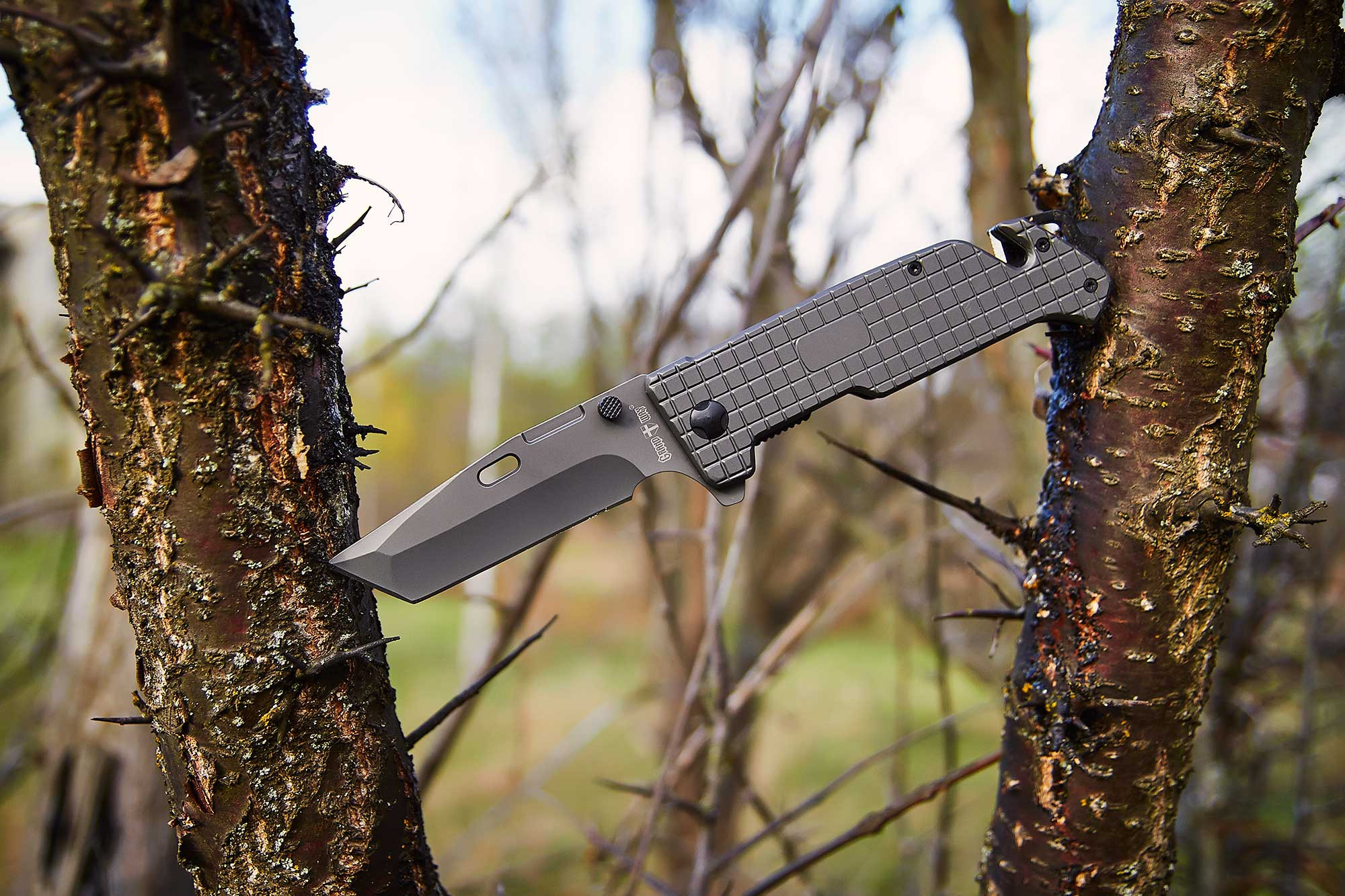 Плюс, в конструкцию входят стеклобой и стропорез, которые вообще постоянно готовы к действию. Стеклобоем пробиваем и разрушаем хрупкие преграды (стекло, гипсокартон), стропорез эффективно срезает стропы и автомобильные ремни. В сочетании с общей крепостью конструкции и «дуракоустойчивости», мы получаем не нож, а целый мультитул на случай аварийных ситуаций.