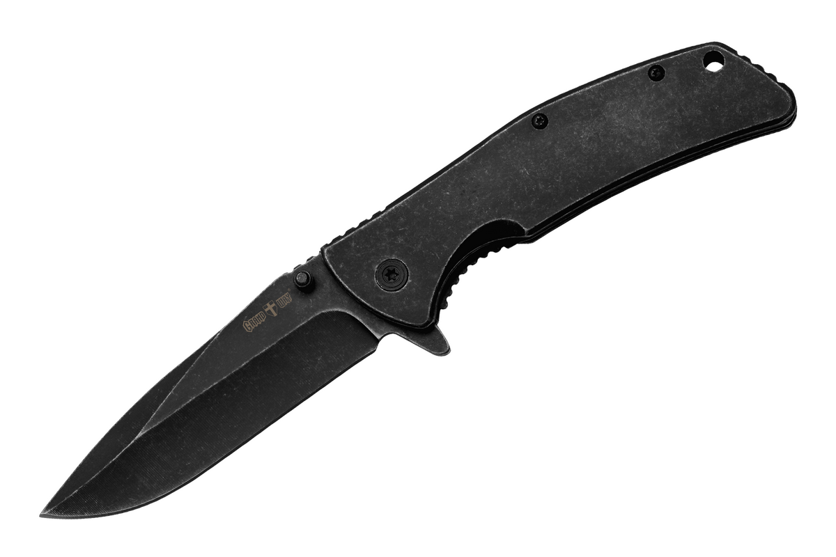 За не совсем понятным термином «полуавтоматический нож», или «нож с ассистом», скрывается гибрид выкидного и обычного складного ножа. Полуавтомат – нож, раскрытие которого происходит, как правило, при легком нажатии на плавничок клинка или шпенек. Затем в работу включается сжатая до этого момента пружина, которая полностью раскрывает клинок ножа. Главное отличие выкидного ножа от полуавтомата – отсутствие возможности раскрыть клинок без нажатия кнопки замка и то, что механизм выброса одновременно является и замком ножа.
