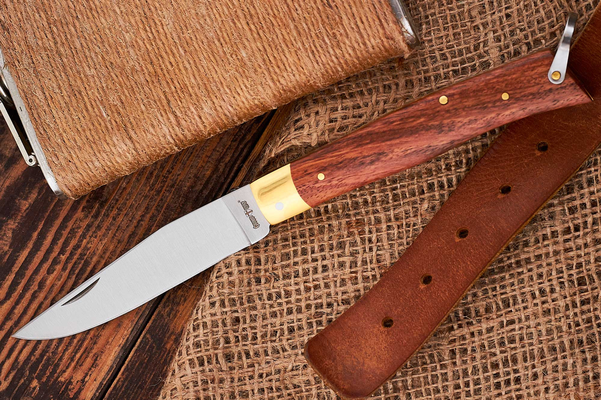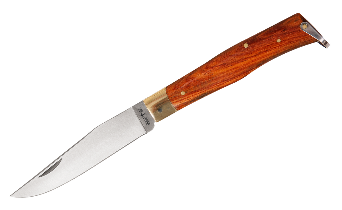 Характеризуется модель простотой устройства и классическим дизайном. Полное отсутствие лишних и непрактичных элементов. Под стать концепции и использование практичных материалов: нержавеющей и износостойкой стали 440 С, дерева на рукояти. Плюс, несложное устройство ножа и скользящее соединение – слип джоинт.