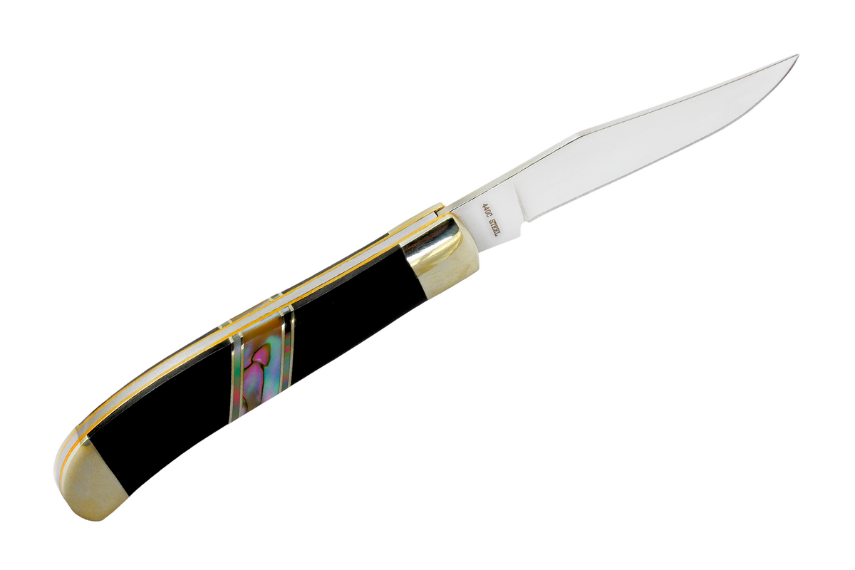 - Клинок. Классическая форма со скосом, из стали 440С. Форма насколько удобная для реза, настолько и красивая. 440 С славится повышенной коррозиестойкостью и долгим удержанием остроты.