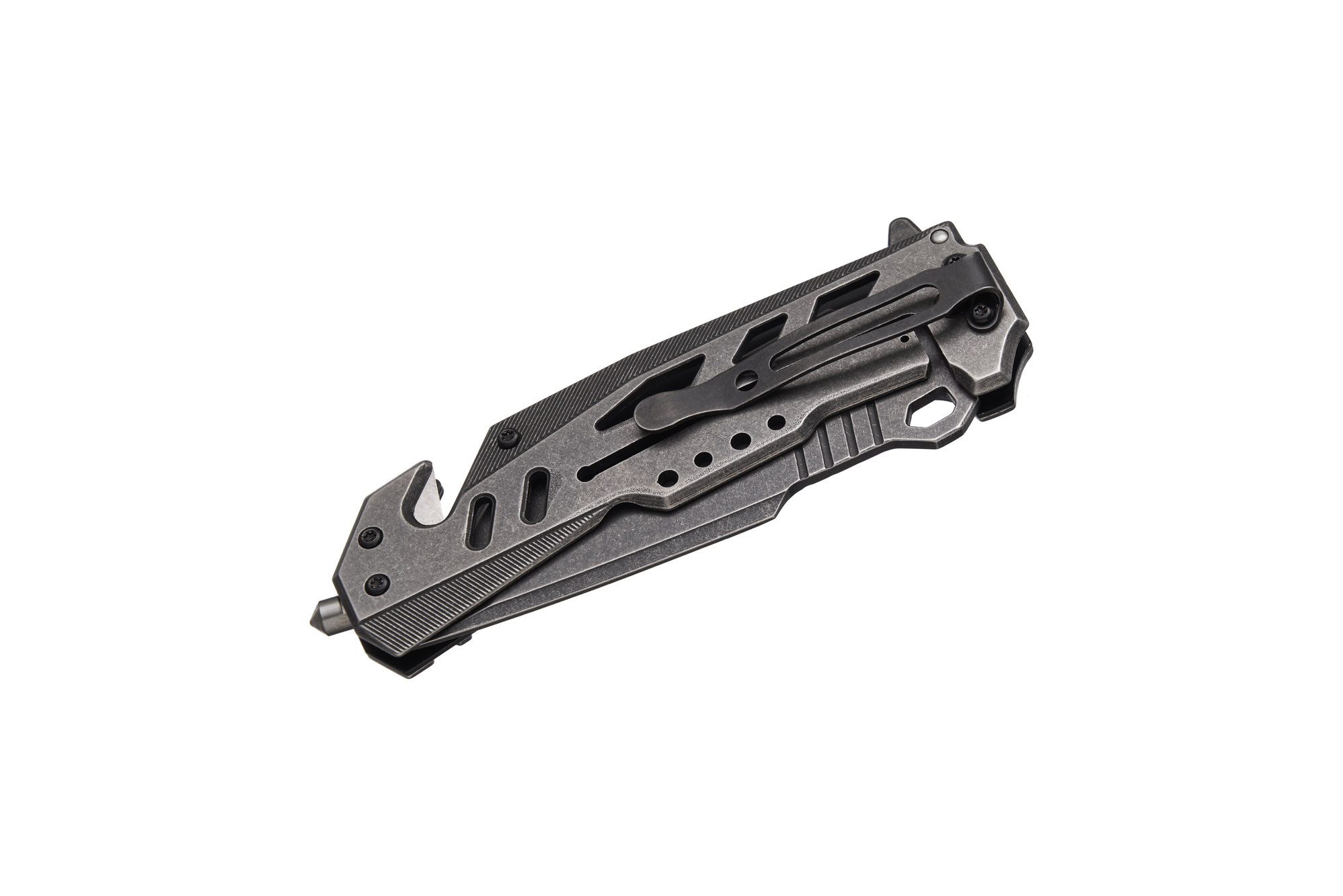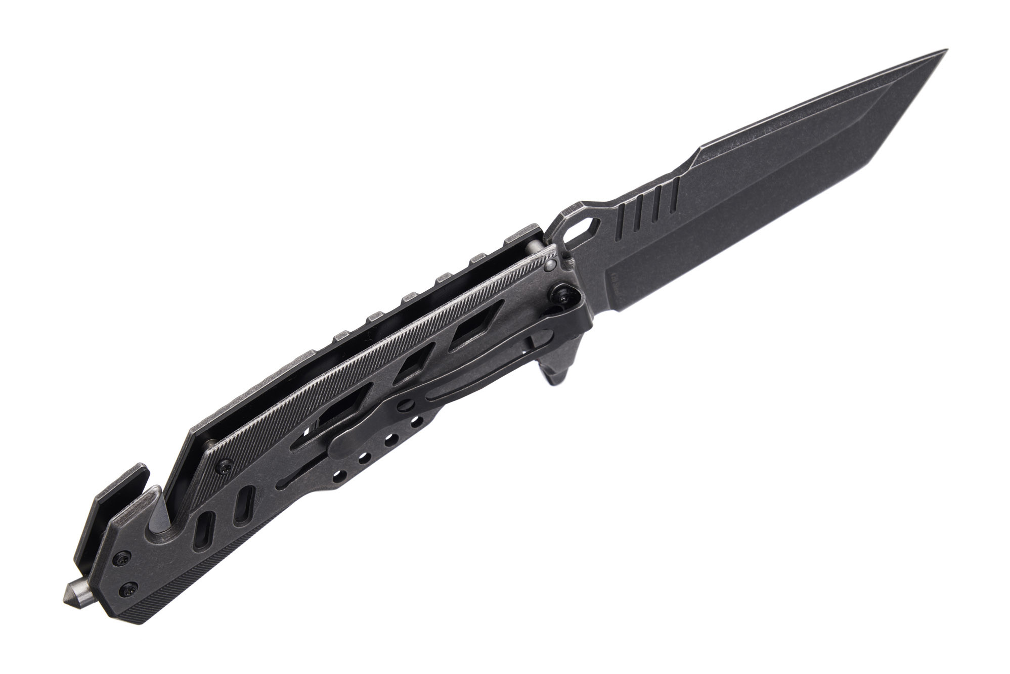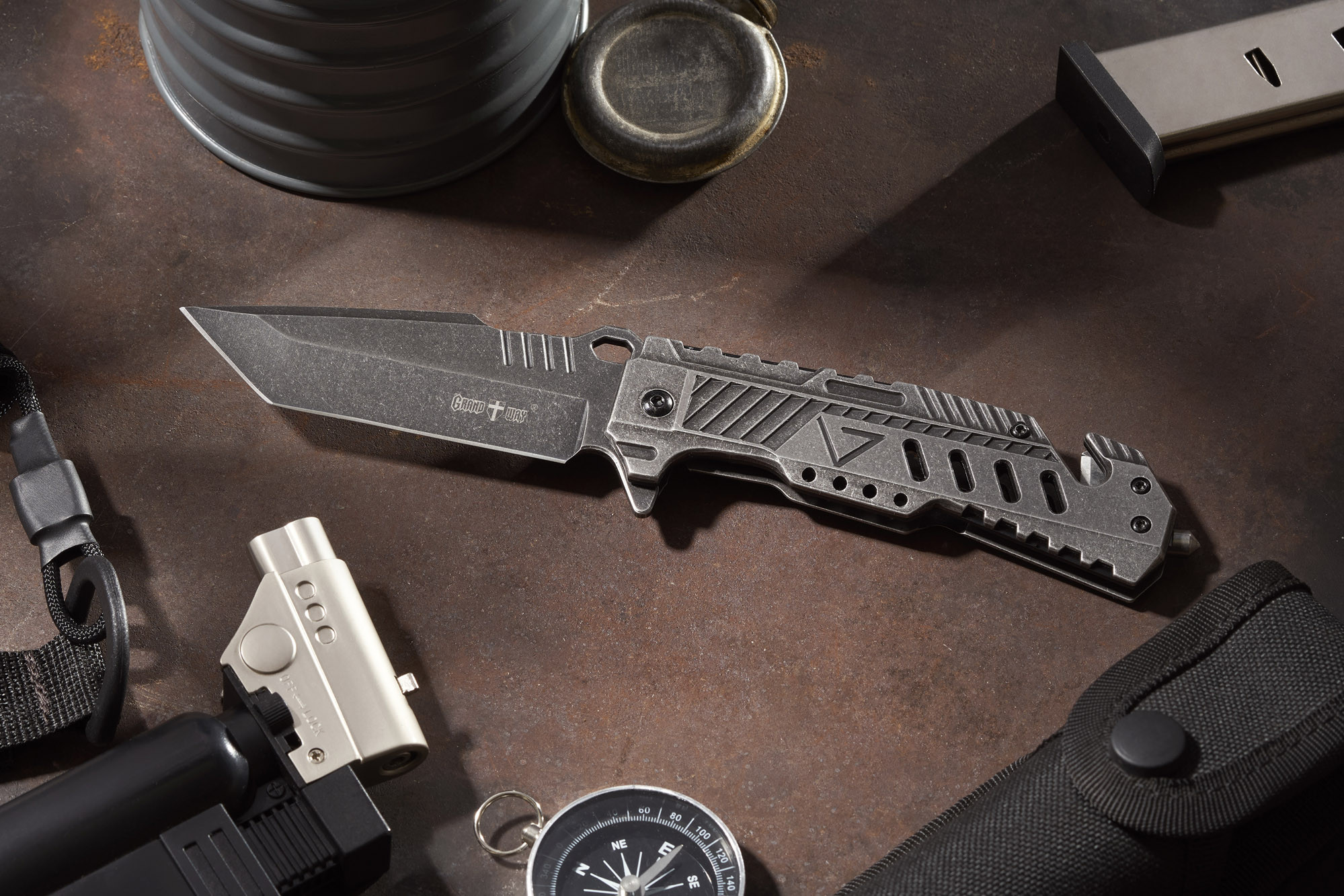 Але Grand Way 220186-4 привертає увагу не тільки дизайном. Насправді цей ніж може стати не тільки корисним ріжучим інструментом а й справжнім засобом порятунку. Бо крім міцного та ефективного клинка типу американський танто у його руків’ї розташовані склобій та стропоріз.