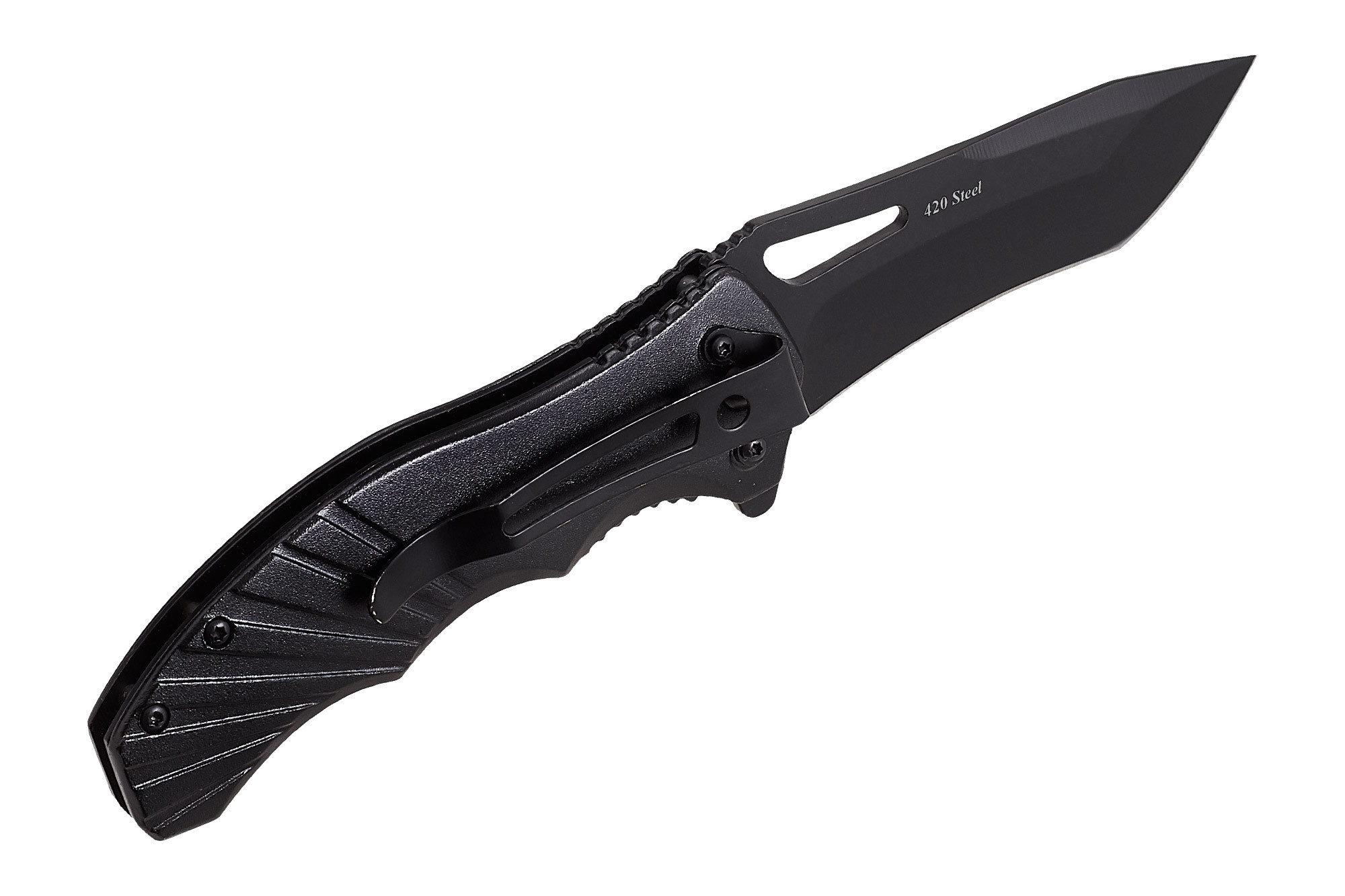 Как альтернативный вариант открывания ножа на клинке имеется отверстие (thumbhole), чрезвычайно удобное для поддевания пальцем.
