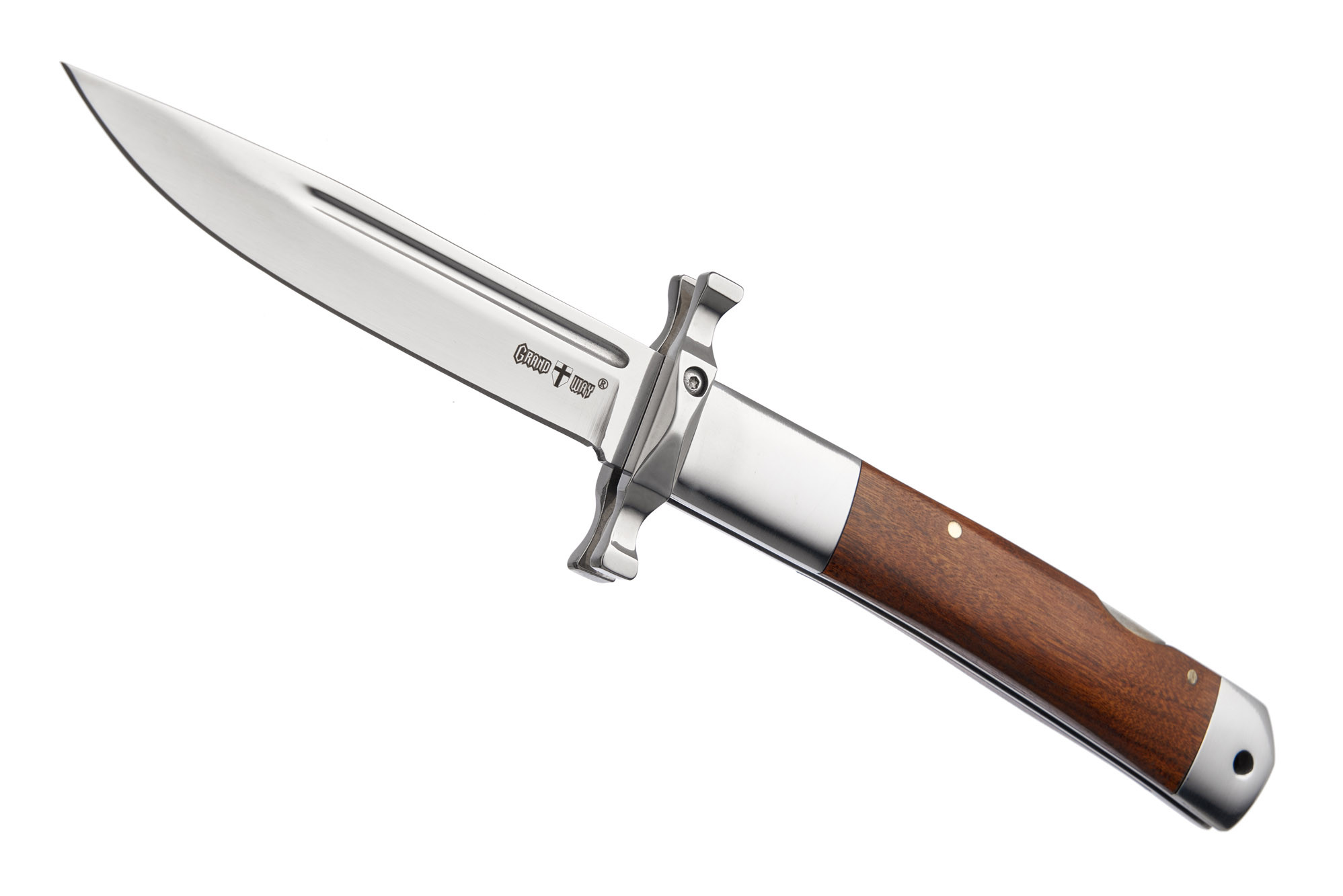В агресивно-стильному дизайні ножа Grand Way 3088 є багато рис італійських складаних стилетів середини двадцятого століття. Без сумнівів, ви неодноразово бачили подібні ножі у голлівудських бойовиках та детективах двадцятого століття. Їх дещо романтизований образ давно увійшов у популярну культуру, став більше, чим просто ножем.