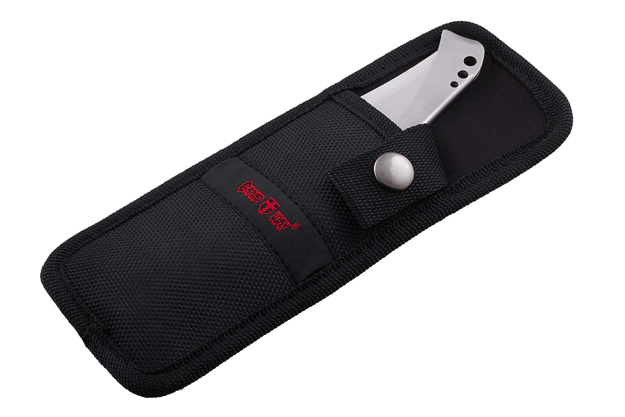 У підсумку, у нас отримується складний ніж середніх розмірів (275 міліметрів) з клинком великої довжини (147 міліметрів). Для захисту від сильно виступаючого з руків'я вістря клинка було придумано досить остроумне рішення. Руків'я ножа продовжує складний металевий хвостовик, в який і складається клинок при укладанні.