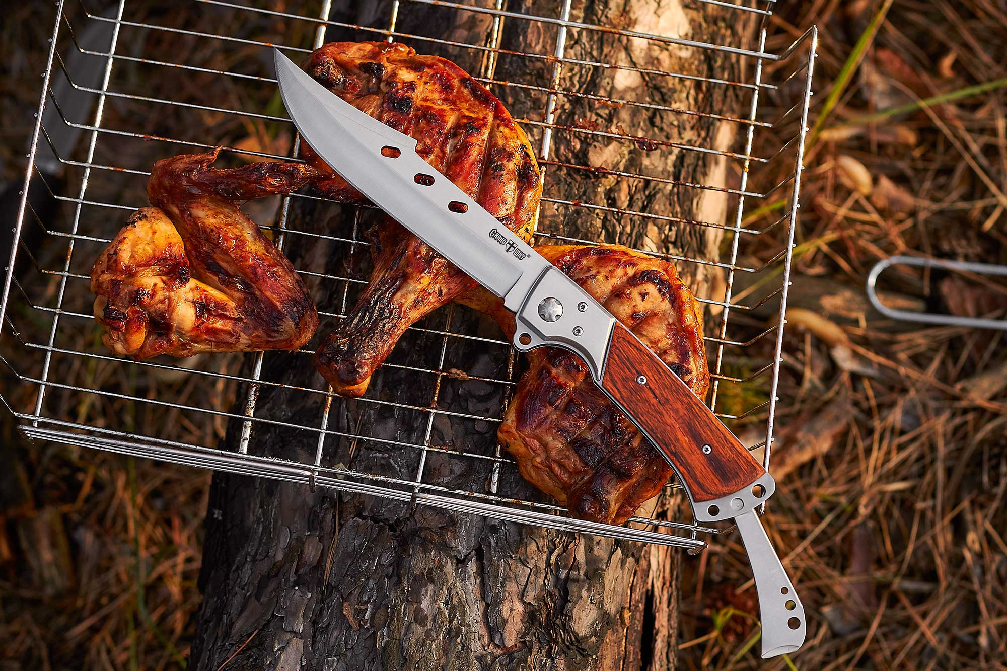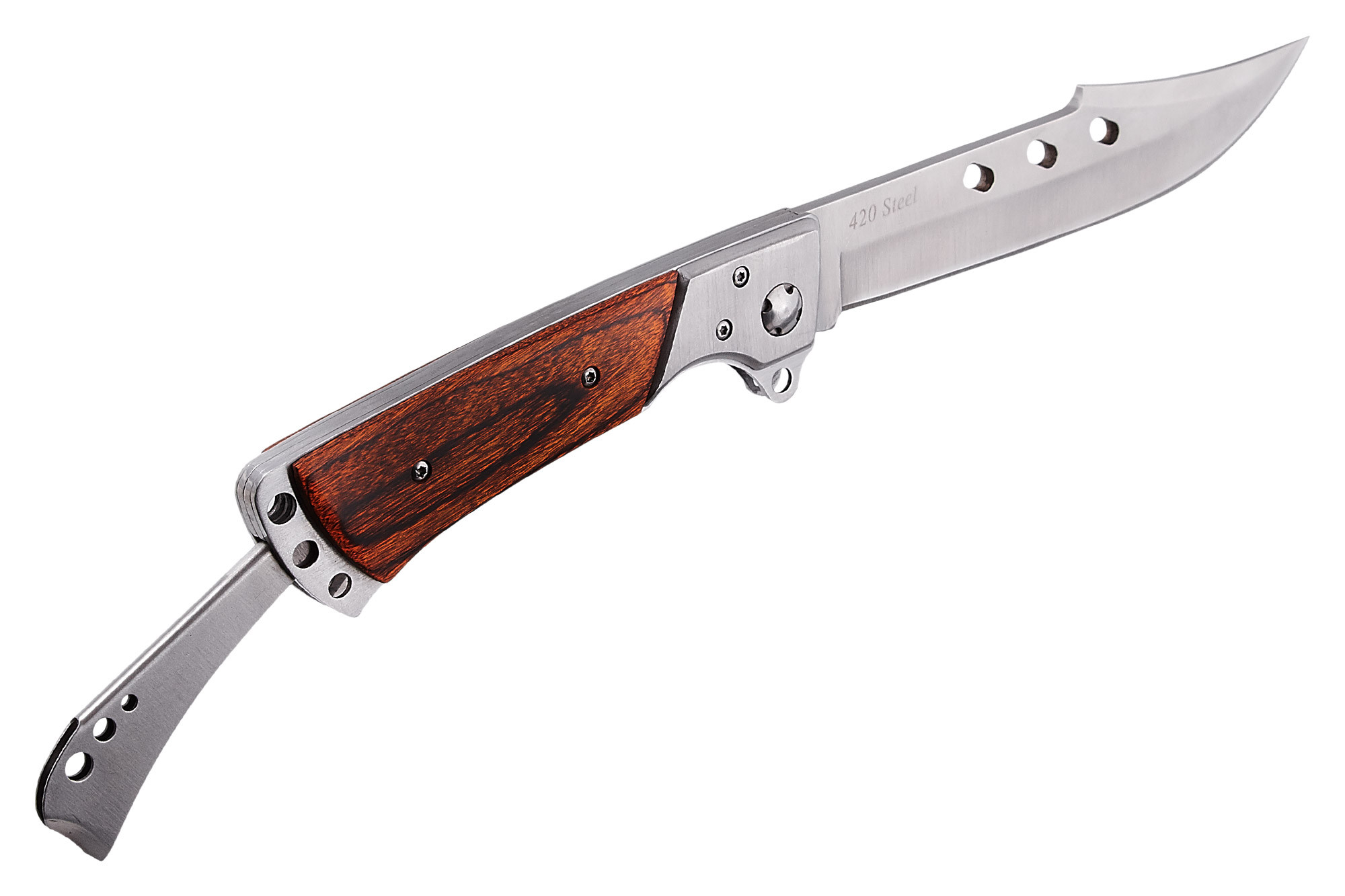 Довжина клинків більшості складаних ножів обмежена довжиною руків'я. Подібна напівскладана конструкція – гарне рішення такої проблеми.